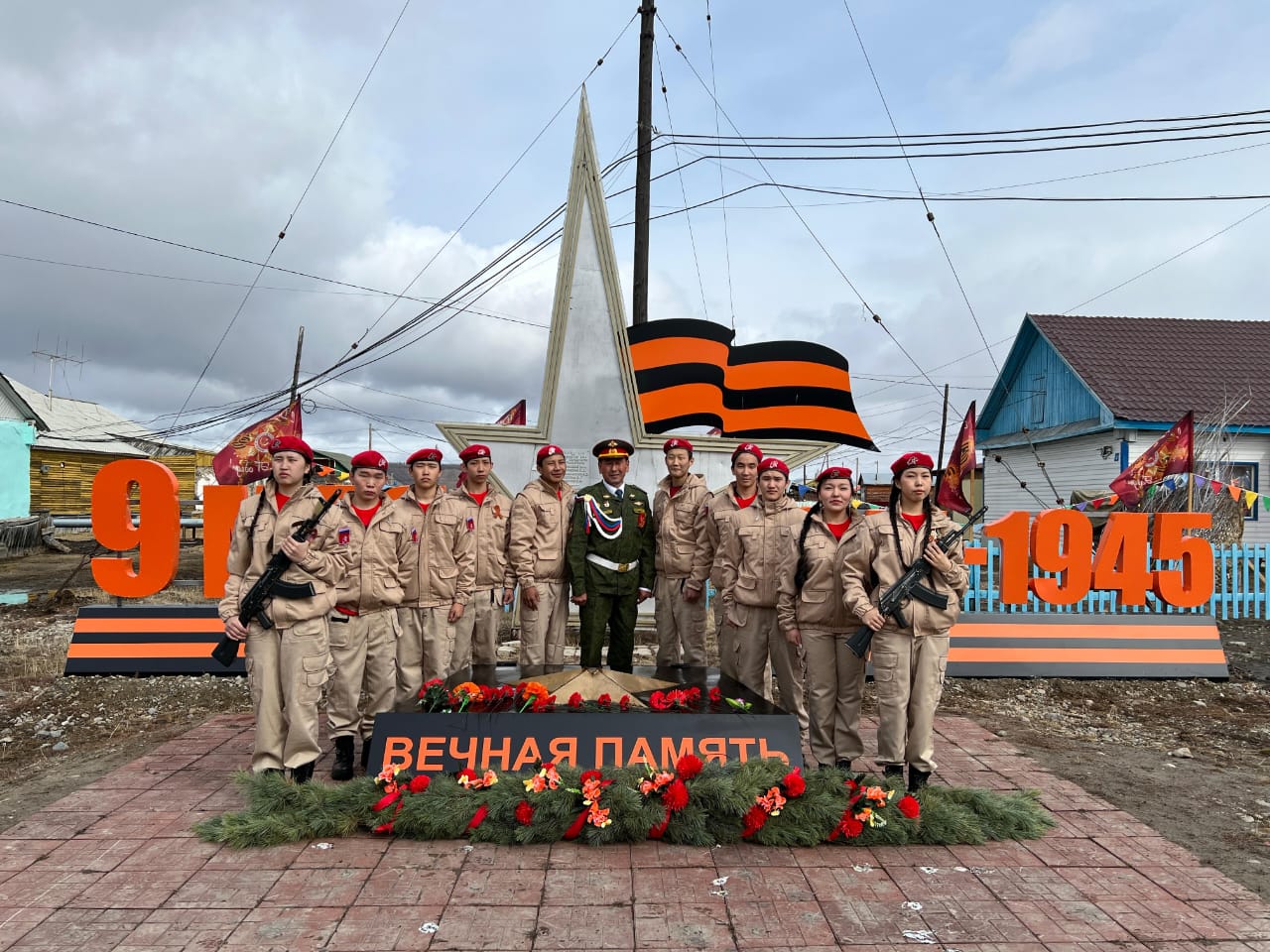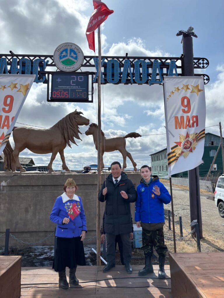 Приближение Дня Победы в с. Томтор чувствовалось ещё в преддверии юбилейной даты. Баннеры, вывески, растяжки, украшенные фасады зданий, окна с символами Победы, флаги и знамя Победы заполнили улицы села.