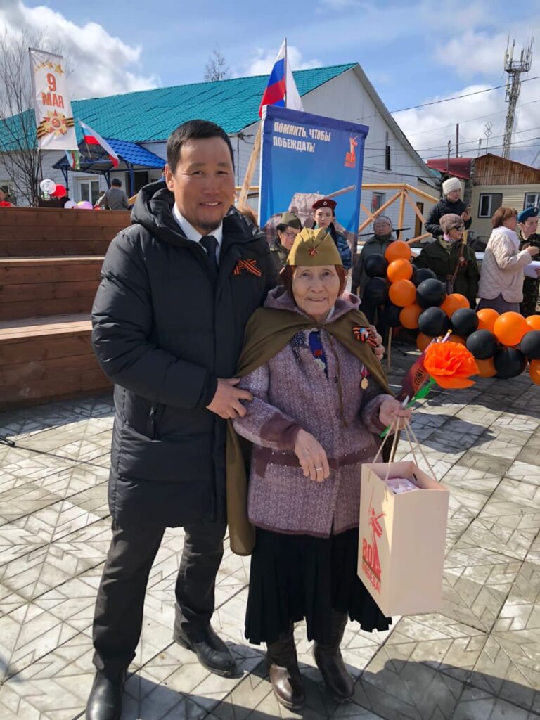 На площади прошел торжественный митинг. Слова признательности за мирное небо над головой героическому поколению адресовал глава 2-го Борогонского наслега А.Н. Винокуров.
