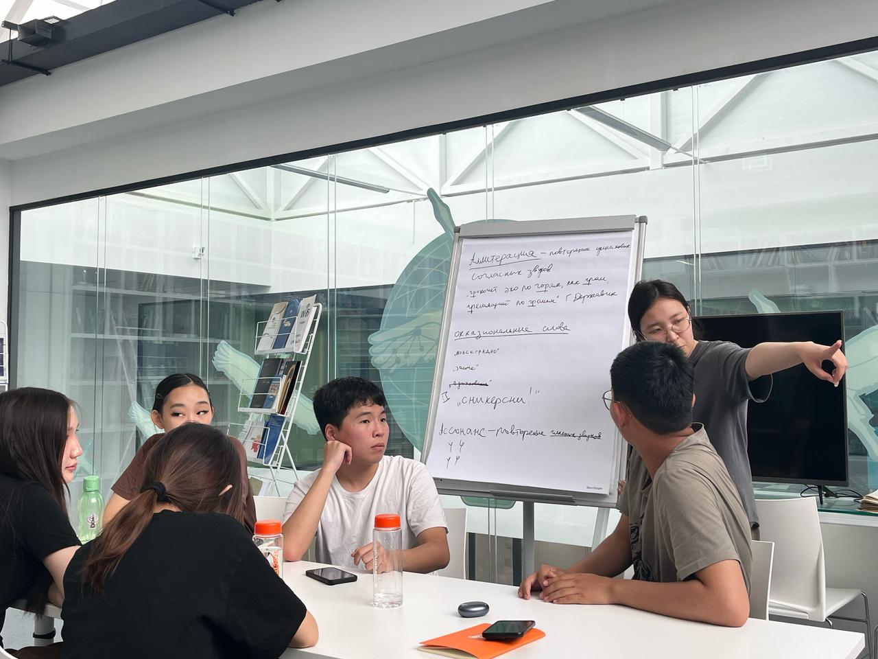 Бүгүн, от ыйын 15 күнүгэр, Саха сиринээҕи чинчийэр оскуола үлэтин иккис күнэ. Күн бастакы аҥаарыгар бырайыак кыттааччыларыгар теоретическэй дьарык ааста. Оҕолор тыл дьайыытын уонна киһи өйүгэр-санаатыгар хайдах быһыылаахтык киирэрин, туттуллар эйгэлэрин, араас көрүҥнэрэ баарын биллилэр, угуйук араас көрүҥнэрин быһаара үөрэннилэр. Икки бөлөххө арахсан, бэйэлэрэ араас тыл дьайыытын ньымаларын туттан, угуйук (реклама) кылгас слоганнарын толкуйдаатылар уонна үлэлэрин көмүскээтилэр.