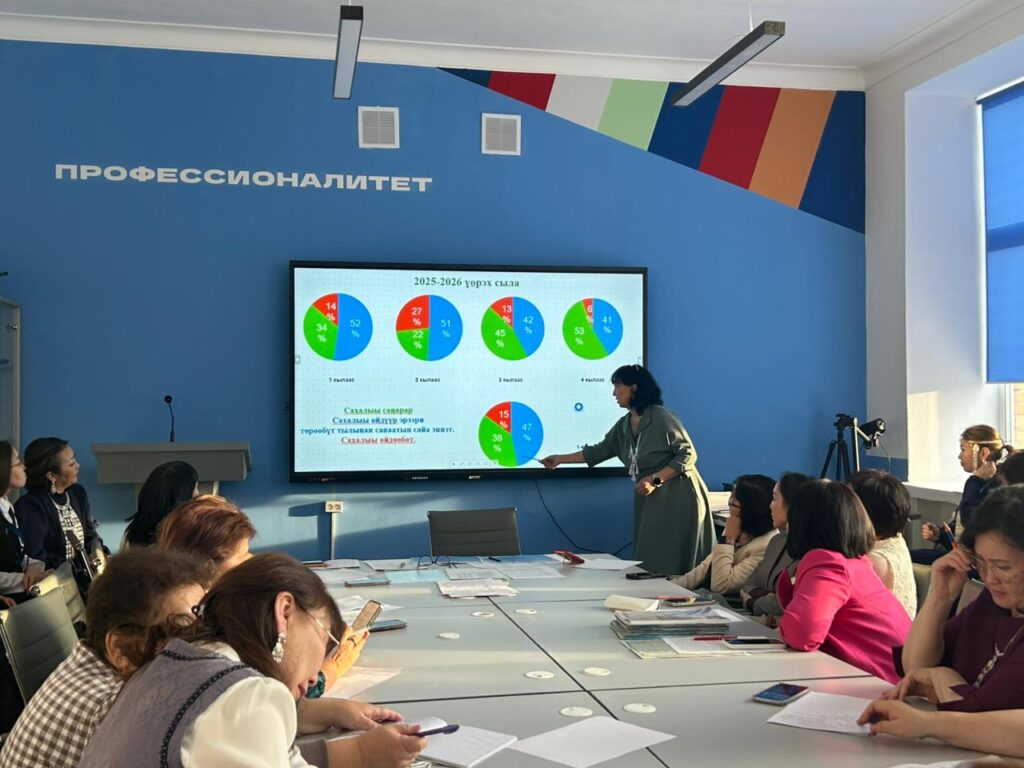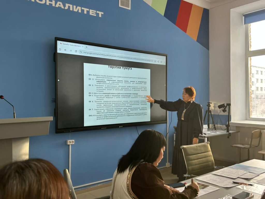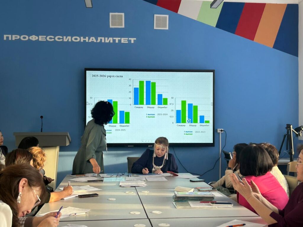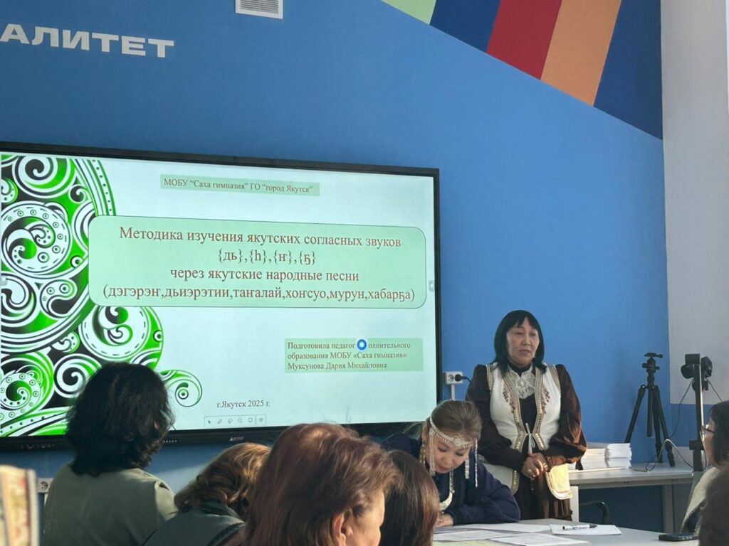 Нюргустаана Иннокентьевна Иванова, Дьокуускайдааҕы педагогическай кэллиэс дириэктэрин уопсай үөрэхтээһиҥҥэ солбуйааччы. Кэллиэс алын кылааһын оскуолата хайдах үлэлии олорорун сырдатта. 2023 сыллаахха тахсыбыт методическай сүбэлэри мустубут учууталларга билиһиннэрдэ. Сахалыы эйгэни саха тылын уруогар эрэ буолбакка, уруһуй уонна труд уруогар эмиэ хайдах киллэриэххэ сөбүн кэпсээтэ.