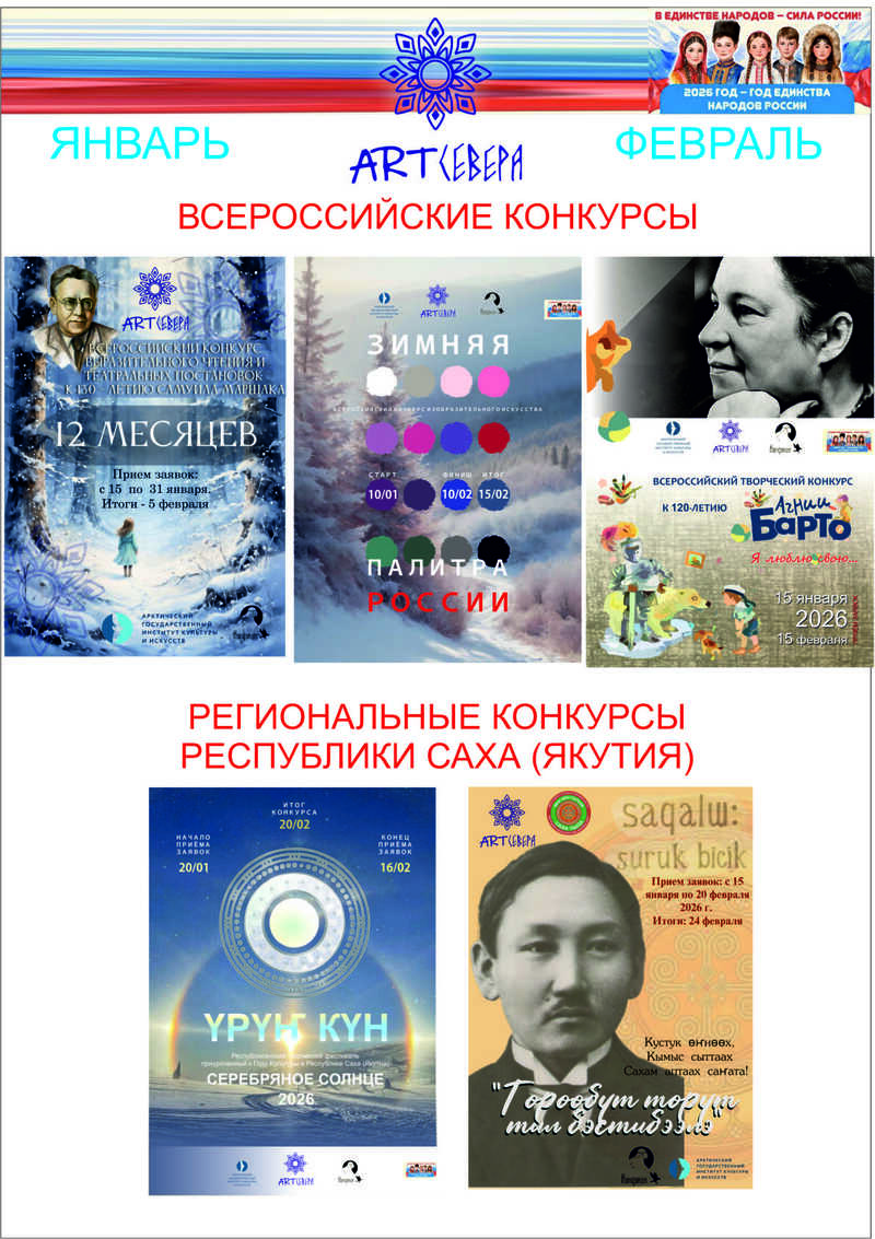Оргкомитет конкурсов АРТСЕВЕРА приглашает вас и ваших талантливых воспитанников принять участие во Всероссийских заочных конкурсах в январе и феврале 2026 года.