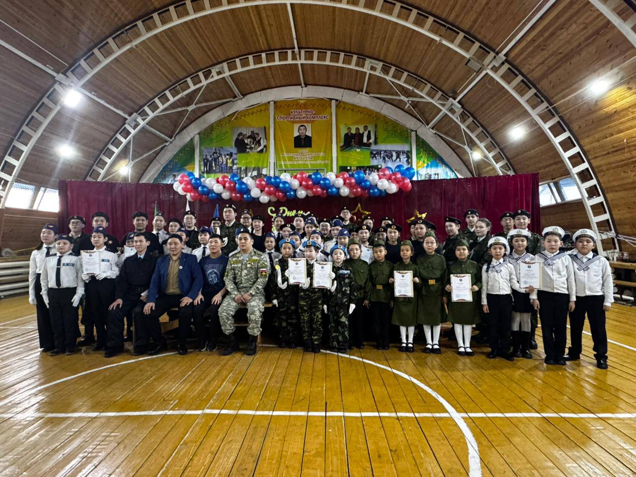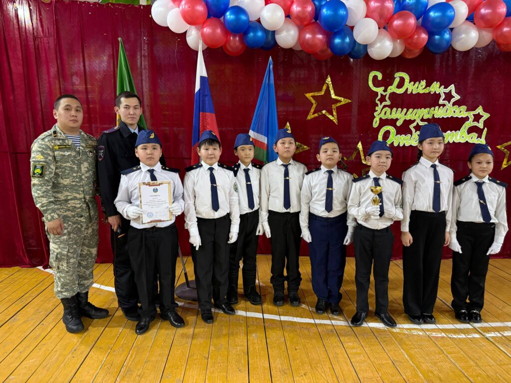 Олунньу 17 күнүгэр биһиги оскуолабытыгар патриотическай иитии ыйын чэрчитинэн, Аҕа дойдуну көмүскээччи күнүн көрсө «Смотр строя и песни» байыаннай хаамыы күрэҕэ үрдүк таһымнаахтык ыытылынна.