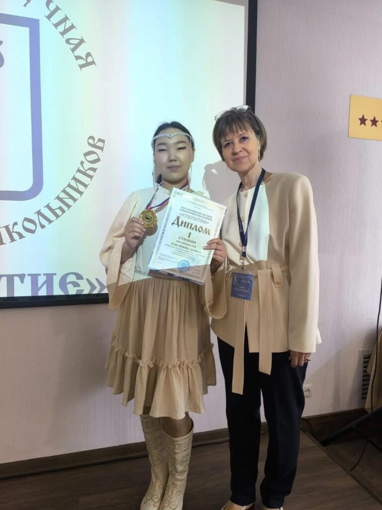 – Арассыыйа 30-ча регионуттан 200-кэ оҕо кыттыыны ылбыт, ол иһигэр Саха сириттэн 9 оҕо. Дарина «История» секциятыгар «Два солдата: унаследованный путь» диэн үлэтин көмүскээтэ. Түгэх өбүгэтэ ыраахтааҕы саллаата Максимтан саҕаланан хос-хос эһэтигэр Максимов Дмитрий Алексеевичка тиийэн, онтон салҕыы 21-с үйэ буойуна, Арассыыйа Дьоруойа Максимов Родимир Дмитриевич геройдуу суолун научнай чинчийиигэ олоҕуран үөрэттэ. Бу секцияҕа 43 эдэр чинчийээччи кыттыыны ылбытын учуонай-экспертэр сыаналаатылар. Кинилэр научнай үлэ бары ирдэбилгэ сөп түбэһэрин, тиэмэ кэрэхсэбиллээҕин бэлиэтээтилэр. Дарина үлэтин чаҕылхайдык көмүскээтэ, бары ыйытыыларга лоп бааччы хоруйдаата. Конференция түмүгүнэн муҥутуур кыайыылаах аатын ылла. Түгэнинэн туһанан, «Кэскил» оҕо бэчээтин кыһатыгар махтаныахпытын баҕарабыт. Кинилэр ыытар «Төрүччү» бырайыактарыгар кыттаммыт, чинчийэр үлэбитигэр сүрдээх элбэҕи туһанныбыт. «Кэскиллэр» ыйан-кэрдэн, Национальнай архыып үлэһиттэрин кытта сибээстээн, тиэмэбит аатын чочуйан, хайысхатын, ис хоһоонун чопчулаан биэрбиттэрэ. Саамай үчүгэйэ диэн «Кэскиллэр» «Төрүччү» бырайыакка кыттар оҕолорун «Инникигэ Хардыы» конференцияҕа таһааран, саҕаланыаҕыттан бүтүөр диэри арыаллаан илдьэ сылдьаллар, куруук сүбэ-ама буолаллар, көмөлөһөллөр. Үөрэнээччибин Даринаны, ийэтин, чугас дьоннорун улахан ситиһиинэн өссө төгүл эҕэрдэлиибин, – диэн кэскил14.ру саайка анаан Дарина Максимова салайааччыта Лилианна Эрнстовна Егорова кэпсээтэ.