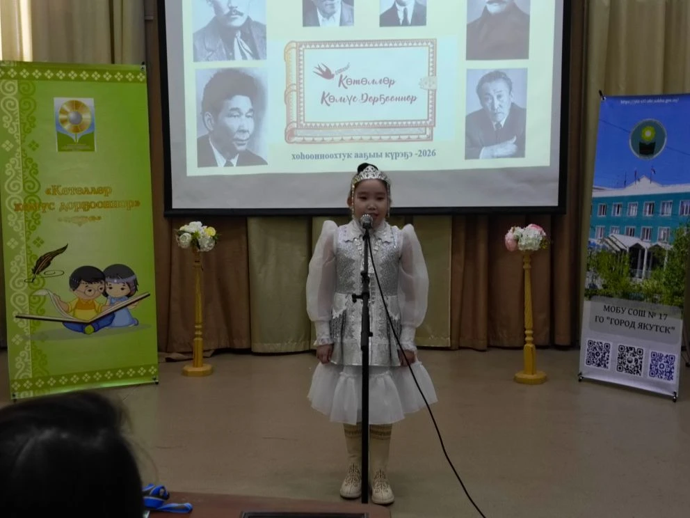 Олунньу 27 күнүгэр Дьокуускай куоратын 17-с нүөмэрдээх орто оскуолатыгар үгэс буолбут Өрөспүүбүлүкэтээҕи «Көтөллөр көмүс дорҕооннор-2026» хоһоон ааҕыытын күрэҕэ буолан ааста. Курэх 2019 сылтан сылын ахсын үбүлүөйдээх суруйааччылар хоһооннорун үйэтитээри ыытыллар. Быйыл 1-9 кылааска диэри оҕолору түмэн, уопсайа 76 үөрэннээччини, онтон 47 алын кылаас, 29 орто кылаас оҕолорун сөбүлээн талбыт хоһооннорун ааҕалларын иһиттибит. Быйылгы күрэх балаһыанньатынан үбүлүөйдээх суруйааччылар айымньыларын таһынан улуу суруйааччыбытыгар А.Е.Кулаковскайга аналлаах туспа салаа эмиэ киирбитэ.