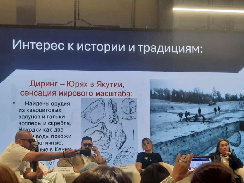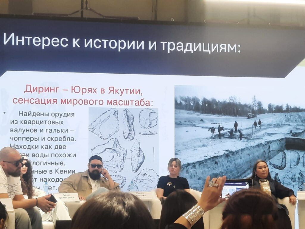 Пожалуй, это была одной из самых оживлённых площадок форума, ведь здесь спикерами выступали по-настоящему кумиры и тренды! Башкирская фолк-группа, созданная в 2024 году в Уфе и работающая в стиле этно-поп, получила широкую известность после исполнения второй песни «Homay» из музыкального альбома «Урал батыр», которая стала хитом и набрала миллионные прослушивания на различных площадках по всей России. Сегодня под эту песню снимают ролики на самые разные темы и дети, и взрослые. Как же вроде сугубо региональная, национальная тема, тем более тема народного эпоса смогла взорвать публику, независимо от национальной принадлежности?