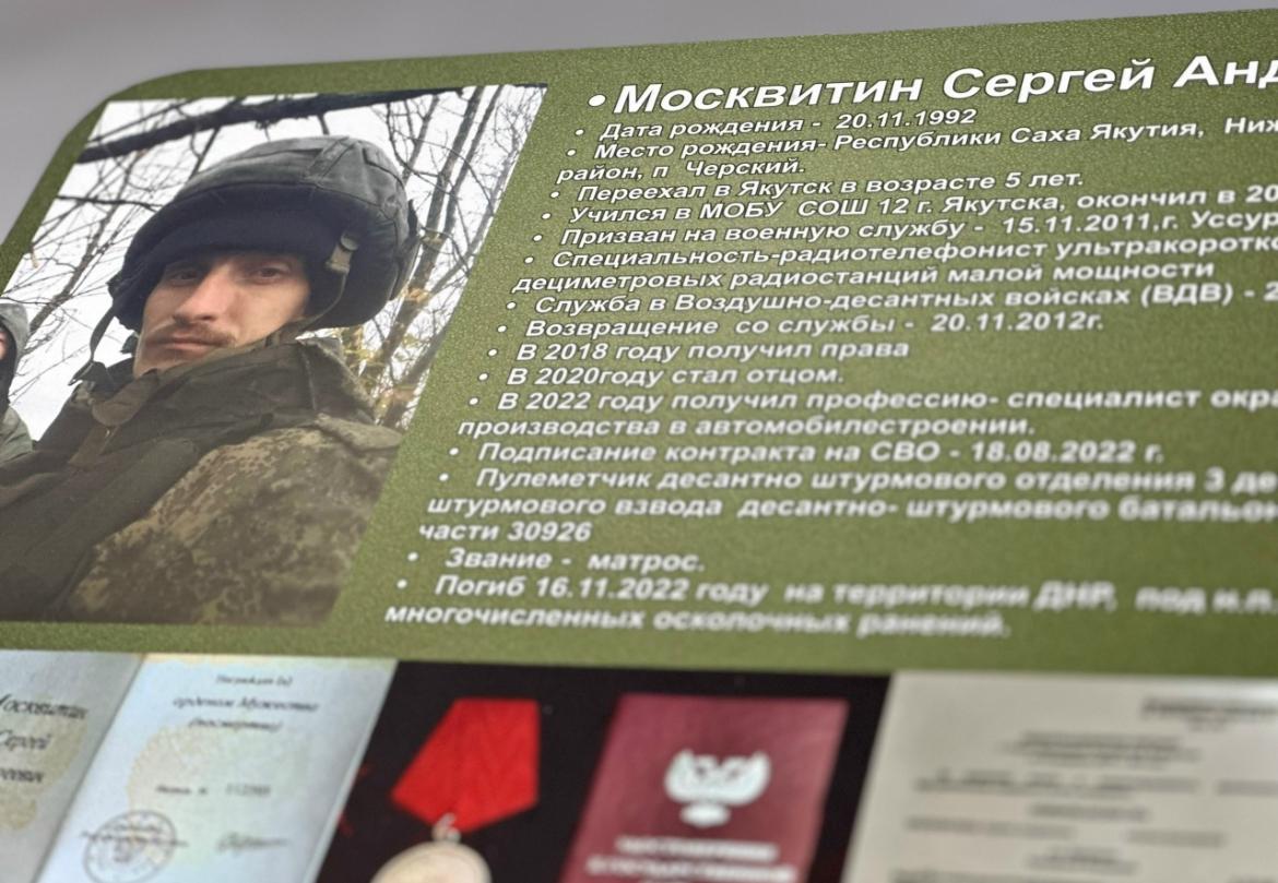 Сергей окончил нашу школу много лет назад, но до сих пор остаётся гордостью нашего учебного заведения. При исполнении воинской службы погиб 16 ноября 2022 года на территории Донецкой народной республики, под населенным пунктом Павловка от многочисленных осколочных ранений. Указом Президента РФ от 22 февраля 2023 года под номером 115 за мужество, отвагу и самоотверженность, проявленные при исполнении воинского долга, Сергей Москвитин награжден Орденом Мужества (посмертно).