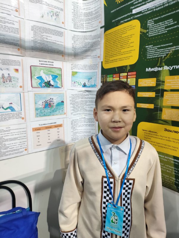 Мое исследование называется «Исследование бурятской легенды о девушке-лебеде и ее сходства с эвенским сказанием моего рода Дотки (Дутки)». Этой темой я начал заниматься с сентября прошлого года. Мне мама однажды рассказала одно древнее эвенское сказание о девушке-лебеде, которое меня заинтересовало и начал его изучать. Моя учительница родом из Бурятии, и она мне рассказала очень схожую бурятскую легенду. Там многие слова были очень похожие, и я нашел информацию, что они могли проживать на одной территории в Манчжурии в Китае.