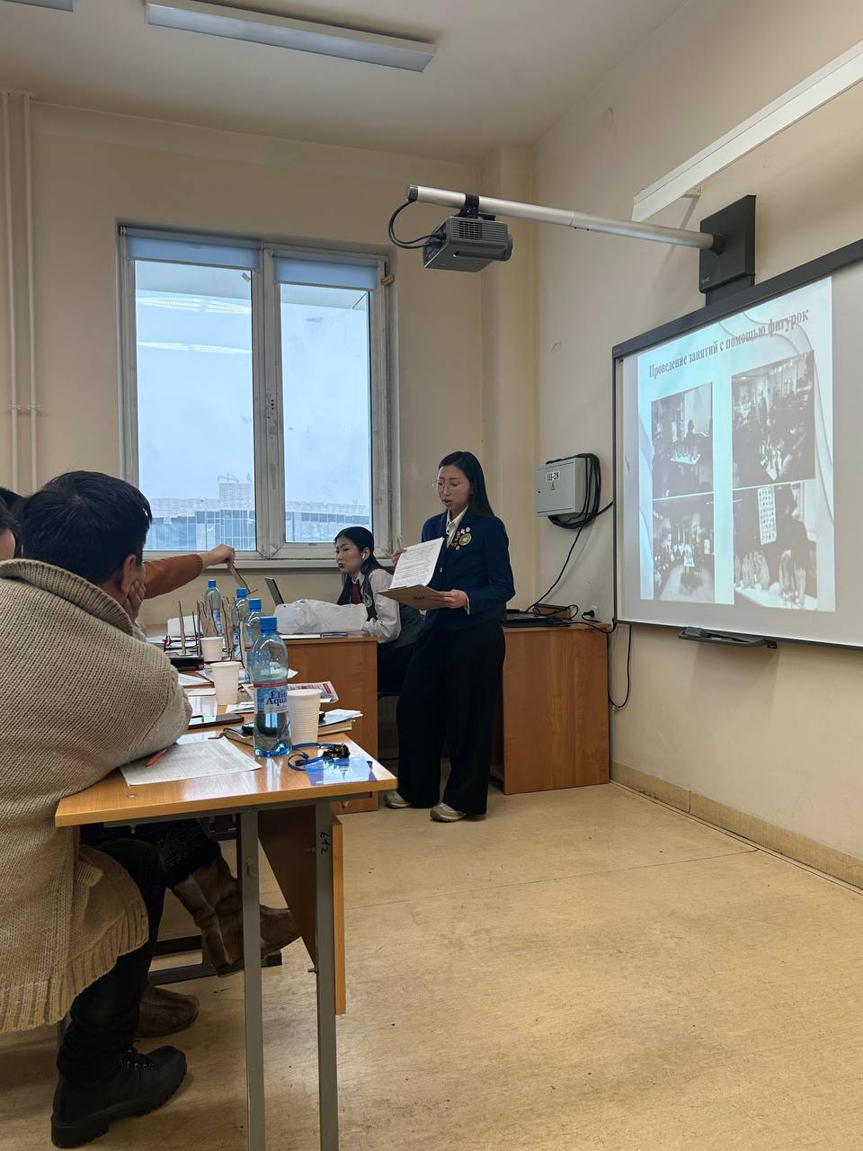 Я выступала в секции Психологии, где в первом туре было представлено 24 работы. В жюри секции сидели кандидаты психологических наук и доценты из психологических и педагогических институтов. Участники представили множество увлекательных исследований. Особенно меня привлекла работа о невербальной коммуникации в имидже политиков. Моя же работа касалась архетипов персонажей олонхо и их влияния на развитие эмоционального интеллекта у дошкольников. Актуальность моей работы заключается в том, что в современном мире важно лучше понимать себя и других. Это помогает людям развиваться, находить свои сильные стороны и успешно взаимодействовать с окружающими. Поэтому очень важно находить новые средства для развития эмоционального интеллекта человека. Исследование этой темы важна для улучшения образования, психологической помощи. Мы предполагаем, что применение архетипов из якутского эпоса эффективна в развитии эмоционального интеллекта детей дошкольного возраста. Архетипы, выступают как дидактический инструмент. А целью является изучение развития эмоционального интеллекта дошкольников (5–7 лет) посредством знакомства с архетипами персонажей эпоса олонхо. Для достижения цели мы изучили понятие и разновидность архетипов в психологии, изучили архетипы в олоҥхо, разработали фигурки по мотивам эпоса народа Саха и провели индивидуальные занятия для детей дошкольного возраста с помощью фигурок. Новизна исследования — новый подход для диагностики эмоций ребенка. На основе архетипов из народного эпоса разработаны новые методы для работы психолога. Фигурки выступают как дидактический материал. Наше исследование в дальнейшем может помочь педагогам в работе с коллективом детей. По итогам конференции, я стала Лауреатом в данной секции.