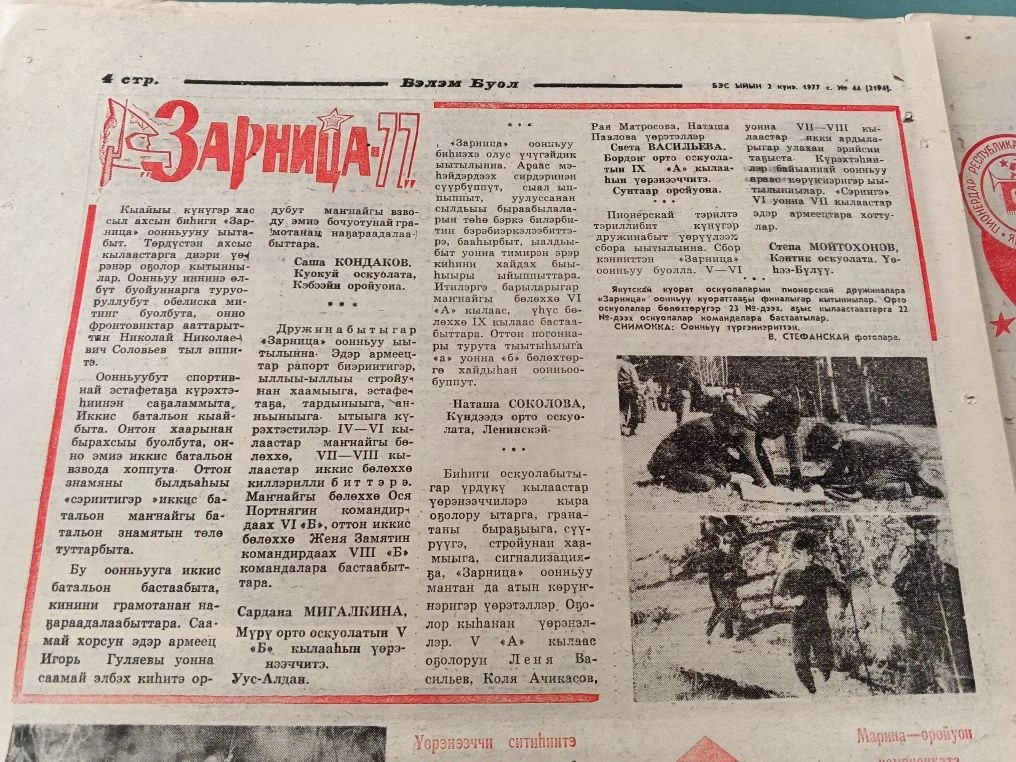 Саша Кондаков, Куокуйская школа, Кобяйский район (Газета «Бэлэм Буол», 2 июня, 1977 год. Рубрика «Зарница-77»)