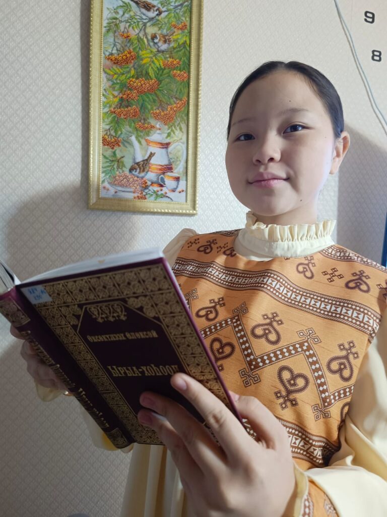 Степан Потапов, VIII «Б» кылаас: — Өксөкүлээх Өлөксөй “Оттоку олук алгыһа” хоһоонун ааҕан бараммын санааҕа ыллардым. Кини айар тыл аҕата оччоттон баччаҕа диэри сытыытык турар кыһалҕалары киэр кыйдаан, алгыс көмөтүнэн барыта этэҥҥэ буоларын быһаарбыт.Ити хоһоонун мин остуолга уура сылдьан ааҕар эбиппин диэн санааҕа кэллим. Бачча бэлэмҥэ олорон, саатар биир үчүгэй хоһоону суруйбат эбиппин. Кини ыарахан олохтоох эрээри, биһиэхэ үтүөнү баҕарар муударай суруйааччы. Билиҥҥи кэми өтө көрбүт ойуун курдук киһи. Ынаҕы-сүөһүнү дэлэтэн, тыа хаһаайыстыбатын сайыннарарга сүрүн сыалбын-сорукпун туруордум. Ынах этин сии олорор, үчүгэй дии. Ол иһин бу айымньы нөҥүө сүөһү ииттинэр дьиэ кэргэҥҥэ улааппыт буолан, саамай сөпкө эппит диэн бигэргэтэбин. Уһун олохтоох, элбэх сүөһүлээх киһи буолуоҕум.