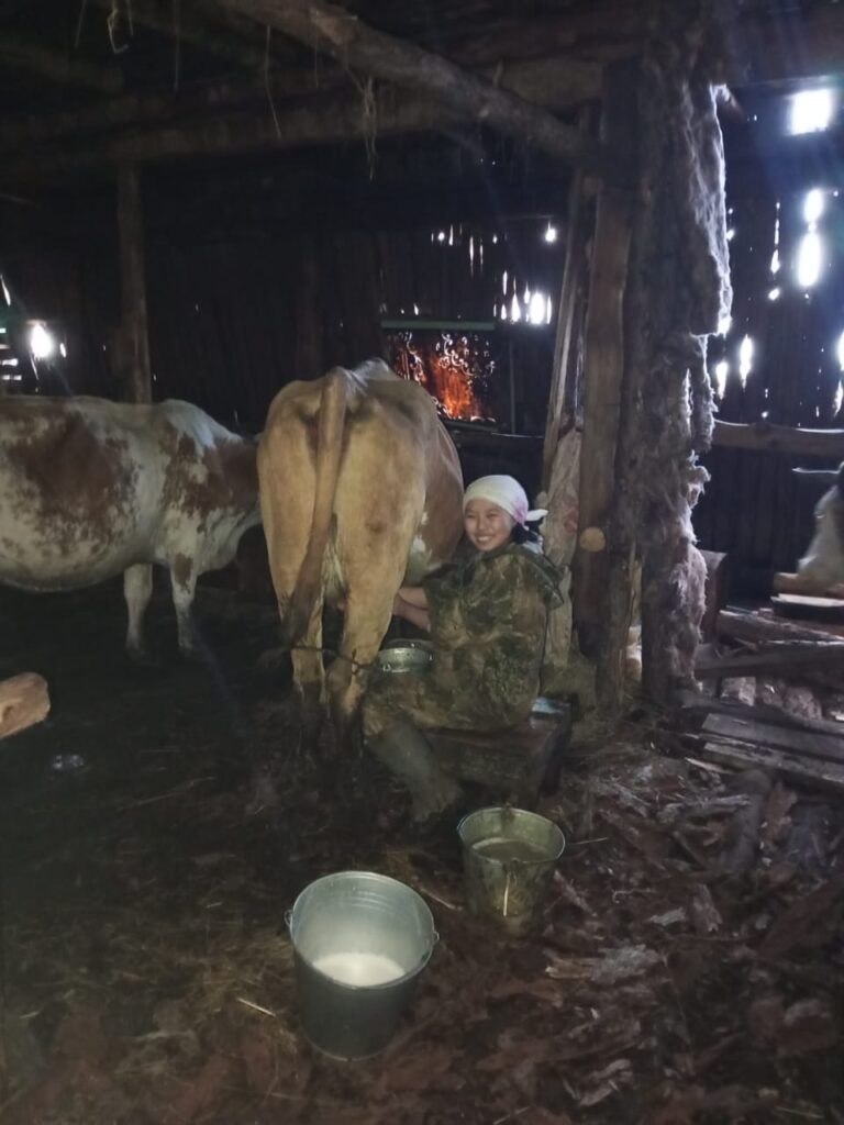 Люба Еремеева, 9 кылаас: «Мин бэс ыйын бүтэһик күннэриттэн сылгы собуотун үүт табаарынай ферматыгар ыанньыксыт көмөлөһөөччүтүнэн үлэлээтим. Миигин кытта Сайаана Созонова эмиэ үлэлиир. Үлэбит сарсыарда алтаттан саҕаланар. Күҥҥэ иккитэ ыыбыт. Мин 16, Сайаана 14 ынахтаахпыт. Күҥҥэ 100 киилэ үүтү ыыбыт. Бастаан сатаабат буолан, ыарырҕаппытым, билигин сатаатым, онон үлэбин сөбүлээтим».