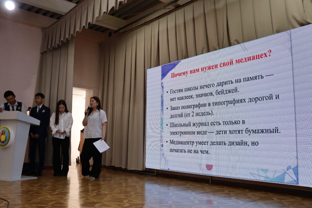 Санаабытын чопчу арыйан, хамыыһыйа уонна уопсай оскуола иннигэр көмүскээтиби, бырайыакпытын билиһиннэрдибит. Уопсай мунньахха Степан Кузьмич Макаров аатынан гимназия оҕолоро, учууталлара бары көхтөөхтүк кытыннылар, кинилэр биһиги бырайыакпытын өйүүр туһунан сөбүлэҥнэрин биэрдилэр.