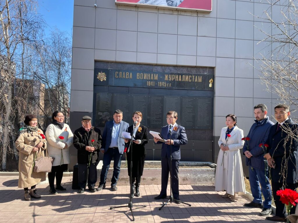 – Дьокуускай куорат биир саамай ытык миэстэтигэр кэлэн турабыт. Сэрии толоонугар охтубут, сэрииттэн тыыннаах эргиллэн кэлбит буойун-суруналыыстары чиэстиир буолбуппут оруобуна 20 сыл буолла. Бу биһиги иннибитигэр турар мемориалга 139 буойун аата-суола суруллан турар. Кинилэргэ эбии Социалистическай Үлэ Геройа Семен Митрофанович Васильев диэн сахаттан бастакы уонна соҕотох промышленноска Геройбутун эбии ааҕан биэриэхпитин сөп. Бу биһиги турар сирбитигэр 20 сыллааҕыта сэрии ветераннара бу буойуттары чиэстииллэрэ. Ол кэнниттэн сэрии ветераннара бүтэн барбыттарын кэннэ биирдиилээн дьоммут хаалбыттара. Бу дьон туһунан, суруналыыс сытыы бөрүөтүн, бойобуой санаатын ылынан эһиэхэ, ыччаттарга биһиги, кырдьаҕас суруналыыстар, тириэрдэр, кэпсиир этибит. Онон ситим быстыбат. Билигин биһиги, сэрии кэмин оҕолоро, эһиэхэ туһаайаммыт бу дьон хоһуун дьыалаларын туһунан кэпсиибит. Ол курдук бу көмүс буукубанан суруллан турар дьоннор бэйэлэрин бириэмэлэригэр олох инники күөнүгэр сылдьыбыттара. Кинилэр саха интеллигенциятын бастаан иһэр этэрээтэ этилэр. Кинилэр бу саха омугун ааҕарга-суруйарга, саҥа былааһы өйүүргэ, общество, государство Саха сиригэр тэриллэригэр сүрдээх улахан охсуһууну көрсүбүттэрэ. Онон биһиги бу дьоммут туһунан хаһан да умнубакка чиэстии, ахта, өйдүү сылдьыахтаахпыт.