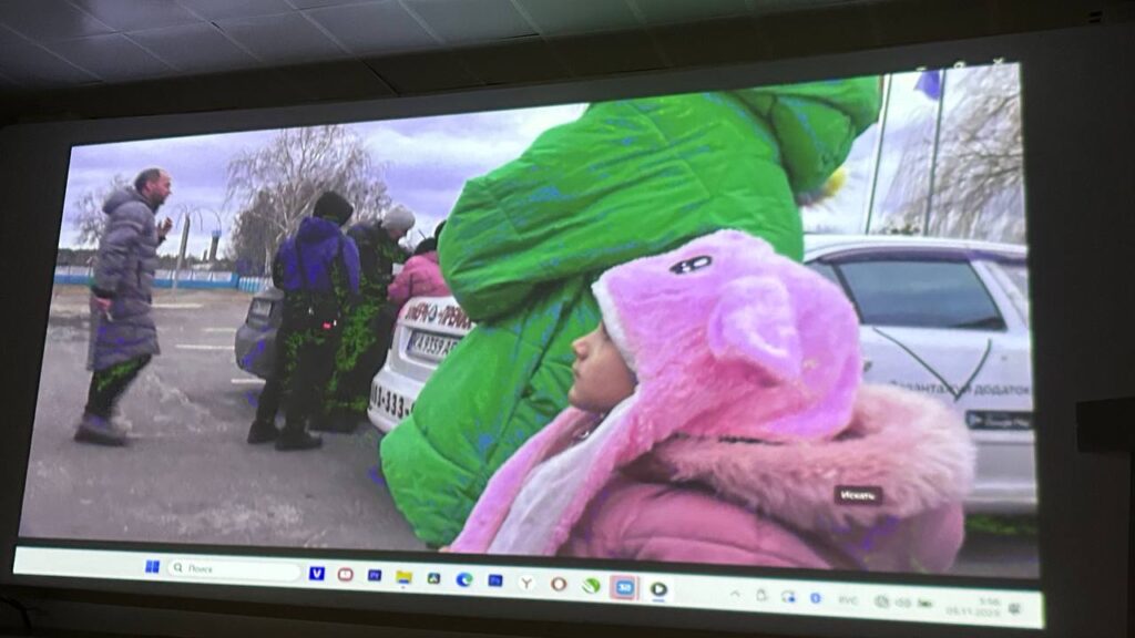 Эпизод «Первые беженцы». Рассказывает Ирина Ким: «Буквально перед нами блокпост подвергся обстрелу, нас развернули. По пути в госпиталь, в приграничном белорусском городе Наровля, мы увидели у здания администрации множество машин с украинскими номерами, но с российскими опознавательными знаками, белыми тряпками. Вокруг суетились люди, дети, старики. Это оказались первые беженцы с киевского направления. Наши бойцы довели их до границы, но дальше им было некуда идти: без связи, без денег, ведь гривны в Белоруссии не в ходу. «Нам все равно, куда, главное – подальше оттуда», — говорили они. Наши журналисты из федеральных каналов молниеносно отреагировали: кто-то давал деньги, кто-то бронировал номера в гостиницах, люди отдавали беженцам все свои припасы. В это время подъехали белорусские таможенники. Представьте картину: украинские машины, российские журналисты у здания администрации. Сначала они были в замешательстве, но, узнав в чем дело, мгновенно организовали пункт приема беженцев прямо на погранзаставе. Всю ночь поток людей не прекращался. Местные жители, откликнувшись на призыв о помощи, несли все, что могли, из своих домов. Удивительно, что первыми пришли на помощь многодетные семьи. Они говорили: «Нам все равно, русские, украинцы — мы один народ». В ту ночь рядом стояли машины с украинскими, русскими и белорусскими номерами. Несмотря ни на что, мы почувствовали, что никаких границ между нами не существует«.