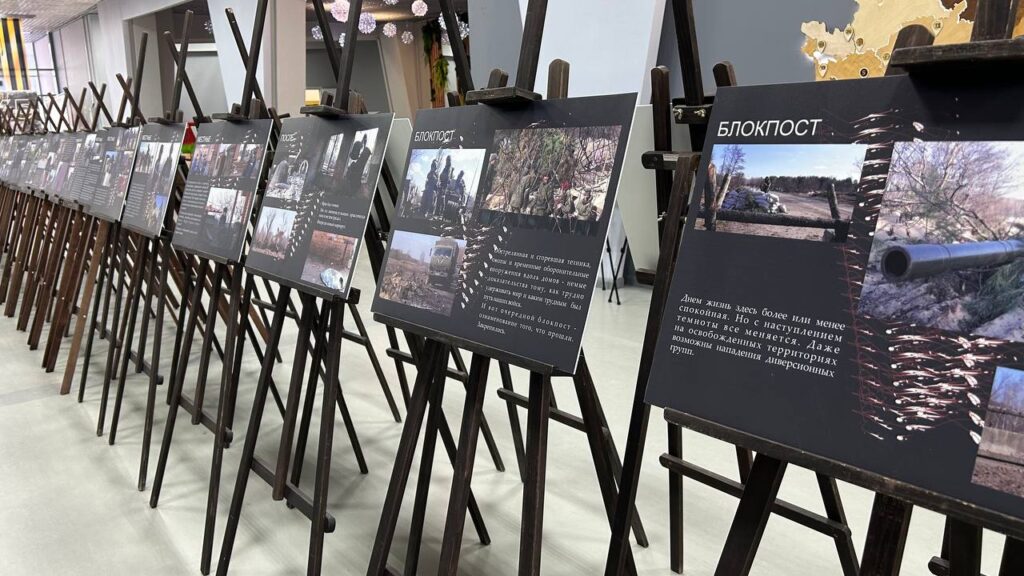 В фойе первого этажа посетителей встречала фотовыставка, запечатлевшая хронику специальной военной операции с 2022 года. Каждая фотография — это осколок реальности, глядя на них приходит осознание, что там, за гранью мирной жизни, разворачивается другая жизнь…