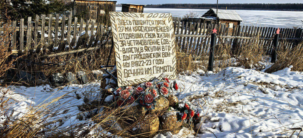 На самой площади важный памятник — братская могила красноармейцев. Наше село имеет центральную улицу, которая именуется улицей Строда. Иван Яковлевич Строд — советский военачальник; участник и герой Первой мировой войны (полный Георгиевский кавалер); участник и герой Гражданской войны в Сибири (один из нескольких военных РСФСР — трижды кавалер высшей награды Советской России ордена Боевого Красного Знамени. Во времена Гражданской войны в с. Петропавловск разгоралась борьба между красными и белыми. У красноармейцев здесь находился петропавловский гарнизон под руководством Дмитриева. Именно к ним на помощь спешил Иван Строд в 1923 г. После Иван Яковлевич напишет книгу «В якутской тайге», где есть глава посвященная походу к селению Петропавловское. Вот что там пишется про братскую могилу: «Красноармейцы, которым помогали крестьяне, развели большой костёр. Когда земля оттаяла, начали рыть братскую могилу. К обеду следующего дня она была готова…После похорон на братской могиле водрузили большую пятиконечную звезду, сделанную по собственному почину местным жителем…где-то в ущельях скалистых берегов Алдана завывал ветер. Тайга глухо шумела, как бы прощаясь с нашими погибшими товарищами». Это был февраль 1923 года.