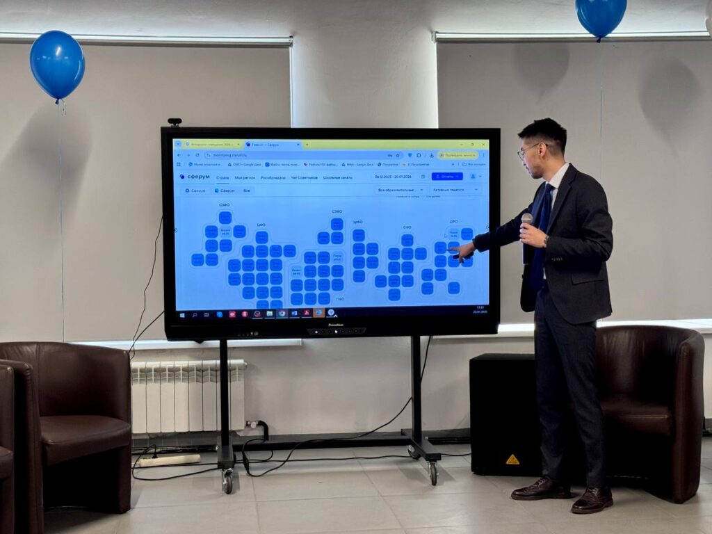 Спикером сессии выступил Артём Придорожный — руководитель направления по взаимодействию с регионами в рамках проекта ИКОП «Сферум». В ходе своего выступления он подробно рассказал о функциональных возможностях национального мессенджера МАХ, его преимуществах и практических сценариях использования в работе советников по воспитанию.