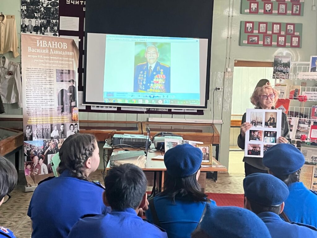 Нам рассказали о наших земляках — героях Советского Союза, их подвигах и о том, кому мы обязаны за мирное небо над головой. Было очень интересно, активно участвовали в дискуссии. Мы узнали много нового: например, как солдаты писали письма своим близким, как образованные дети, несмотря на тяжелые условия, учили людей читать и писать. Благодаря этому наша республика стала одной из самых образованных на тот момент.