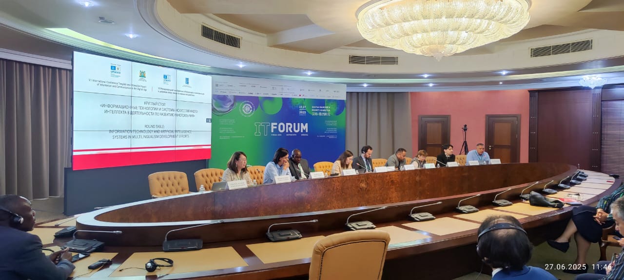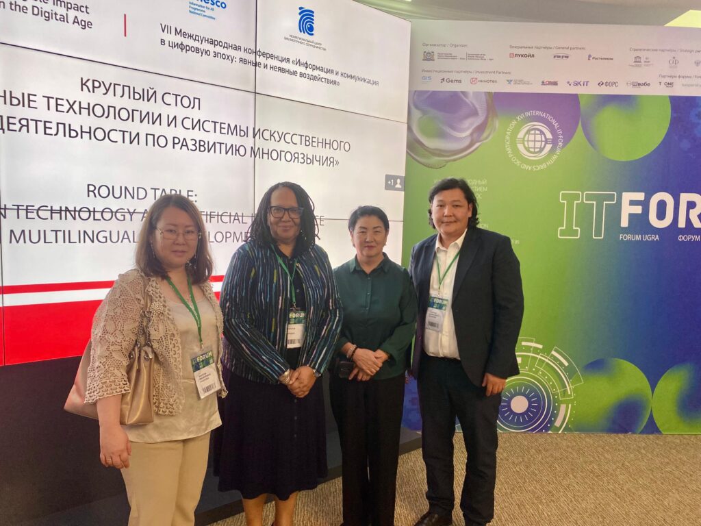 На круглом столе «Информационные технологии и системы искусственного интеллекта в деятельности по развитию многоязычия» сотрудники Центра изучения родных языков Академии наук Республики Саха (Якутия) Вилена Унарова, к.пед.н. и Спартак Леханов представили деятельность по научно-методическому сопровождению родных языков и в целом опыт региона в области сохранения и развития языкового многообразия в цифровом пространстве. Выступления нашли отклик у участников круглого стола, опытом республики заинтересовались представители Индонезии, Казахстана, Ханты-Мансийска и ООО «Яндекс». Кроме того, эксперты круглого стола представили технологии африканских языков, умную колонку Һомай на башкирском языке, опыт ЮАР, проект Языки народов России Яндекса, проекты Югорского НИИ информационных технологий, Университета Макао, Марийского НИИ языка, литературы и культуры и др.
