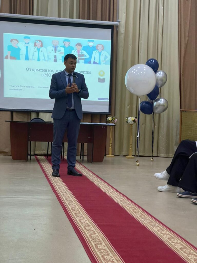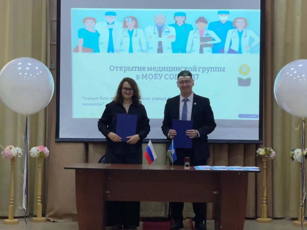Торжественнай линейканы “Аанньаллар” диэн Надежда Макарова салайааччылаах оскуолабыт хора үөрүүлээхтик аста. Оскуолабыт директора Анатолий Чиряев медицинскэй кылаас оҕолоругар анаан истиҥ тыллары эттэ. Ол кэнниттэн Ирина Малогулова уонна директор биир остуолга олорон салҕыы бииргэ үлэлииргэ илии баттастылар. Бу үөрүүлээх түгэнтэн оҕолор да, учууталлар да олус астынныбыт. Биһиги оскуолабыт оҕолоро сайдыылаах, инники өртүгэр дьону эмтиир, быыһыыр туһалаах дьон тахсыахтара диэн эрэнэбит. Бу линейканы 10 «Б» кылааһын үөрэнээччилэрэ Кира Матвеева уонна Артур Попов олус киэргэттилэр. Кира нарын тарбахтарынан скрипка алыптаах муусукатынан оонньоото . Оттон Артур гитаранан доҕуһуоллаата.