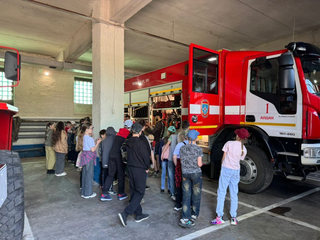 В нашем лагере прошёл тематический день, посвящённый безопасности. Воспитанники отправились на экскурсию в пожарную часть МЧС России г. Алдан, организованную сотрудником пожарно-спасательного отряда и вожатым лагеря Богданом Андреевичем Шайденбергером.