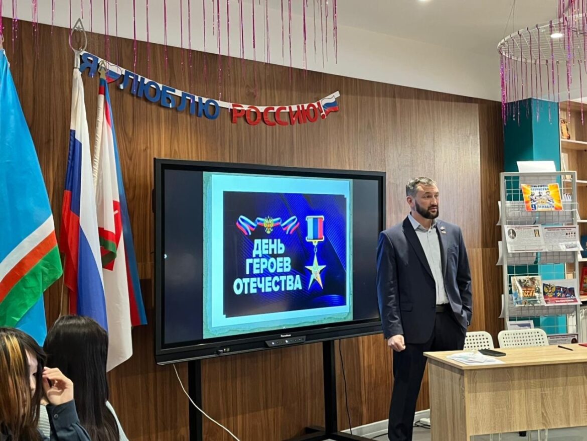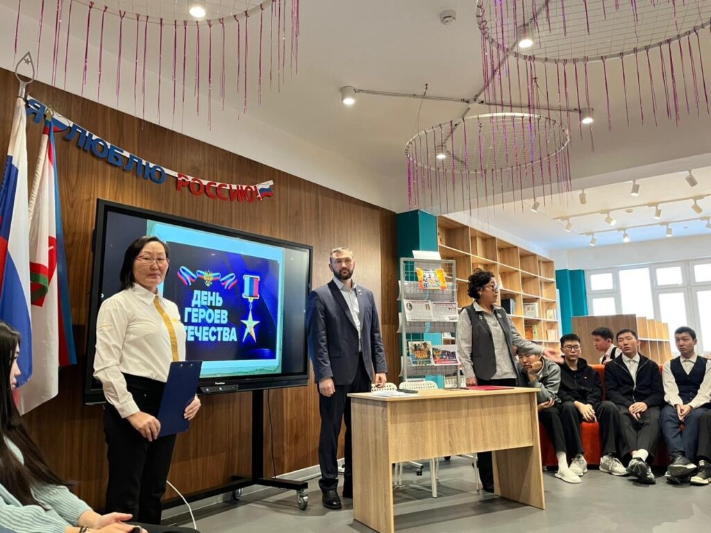 В День героев Отечества в нашей школе прошла встреча с руководителем МКУ «Администрации села Пригородный» ГО «город Якутск» — Владимиром Жексембаевым.