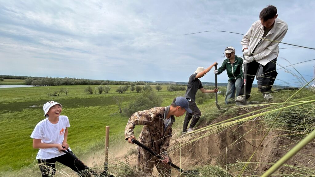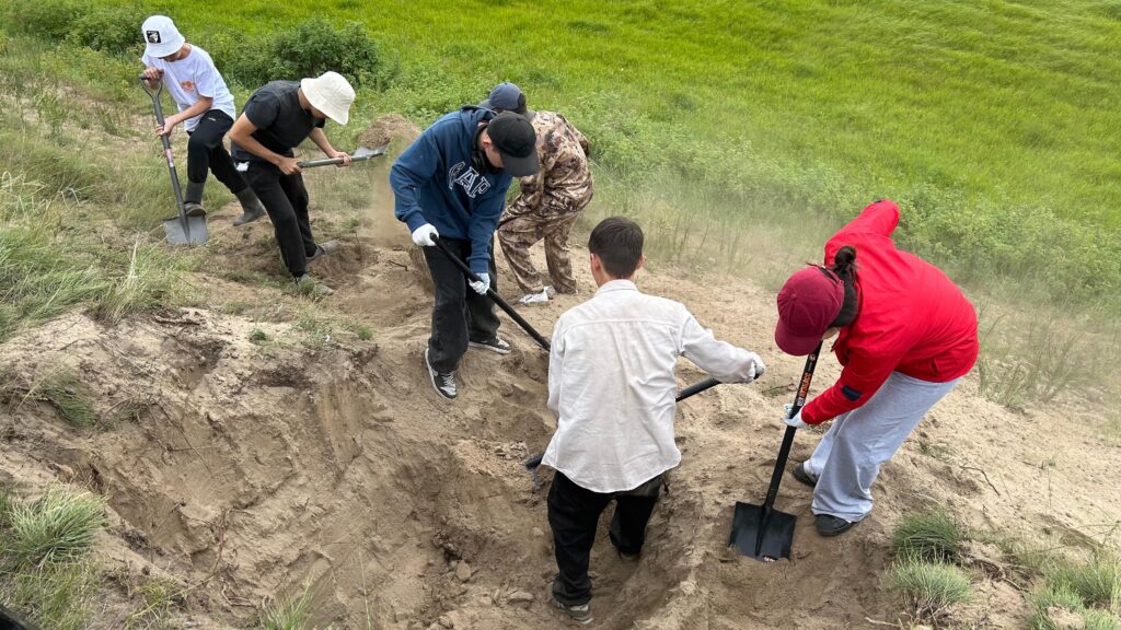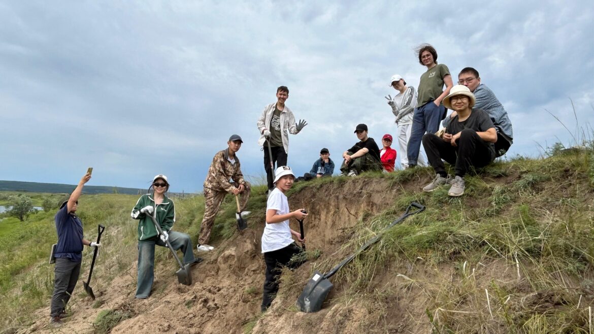 Сегодня, 15 июля, второй день смены Якутской межрегиональной исследовательской школы начался с полевых работ на долине Эркээни. Вооружившись лопатами и перчатками, юные исследователи под руководством опытных тьюторов приступили к вскрытию прирусловых валов.