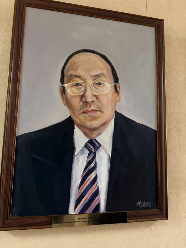 Музейга мин (Айыына Протодьяконова) абаҕам депутат, Ил Түмэн IV Ыҥырыылаах Мунньаҕын бэрэссэдээтэлэ Виталий Николаевич Басыгысов портретын киэн тутта көрдүм.