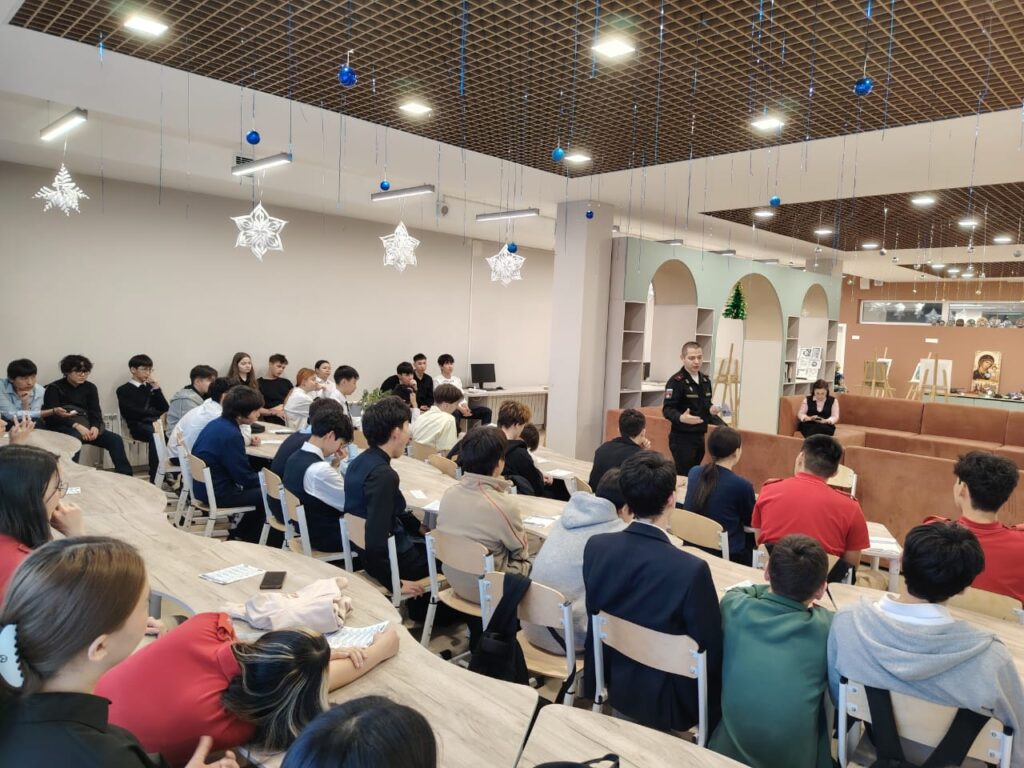 Гостем школы стал майор Андрей Николаевич Антощук, представитель Дальневосточного федерального университета, прибывший с целью проведения целевой профориентационной кампании, посвященной программе подготовки офицеров по военно-учетной специальности.