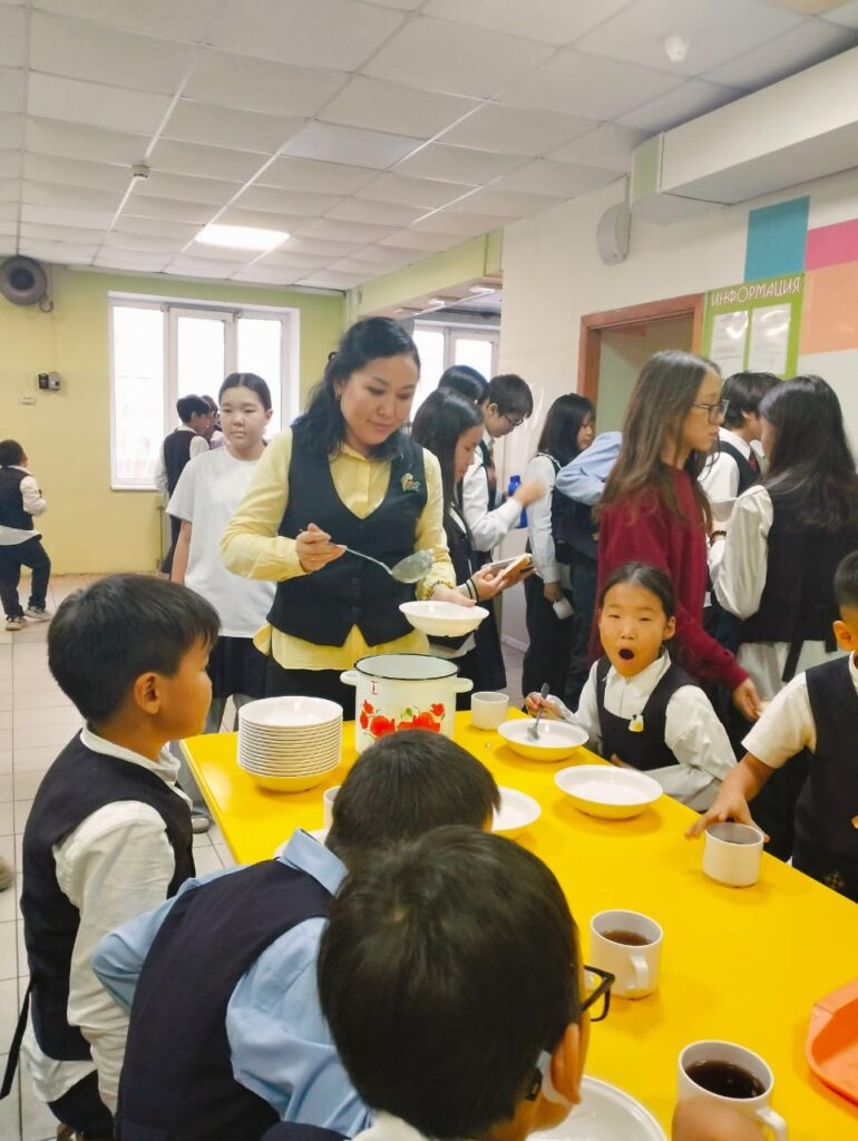 – Продукты поставляет ООО «Комбинат питания “Сергелях”» при университете. Заведующая школьной столовой — Острелгина Ольга Никитична. Комбинат работает напрямую с поставщиками, их всего восемь: хлеб, молоко, мясо, курица, крупы и другие продукты. Всё тщательно проверяется, и если что-то не соответствует требованиям, товар заменяют.