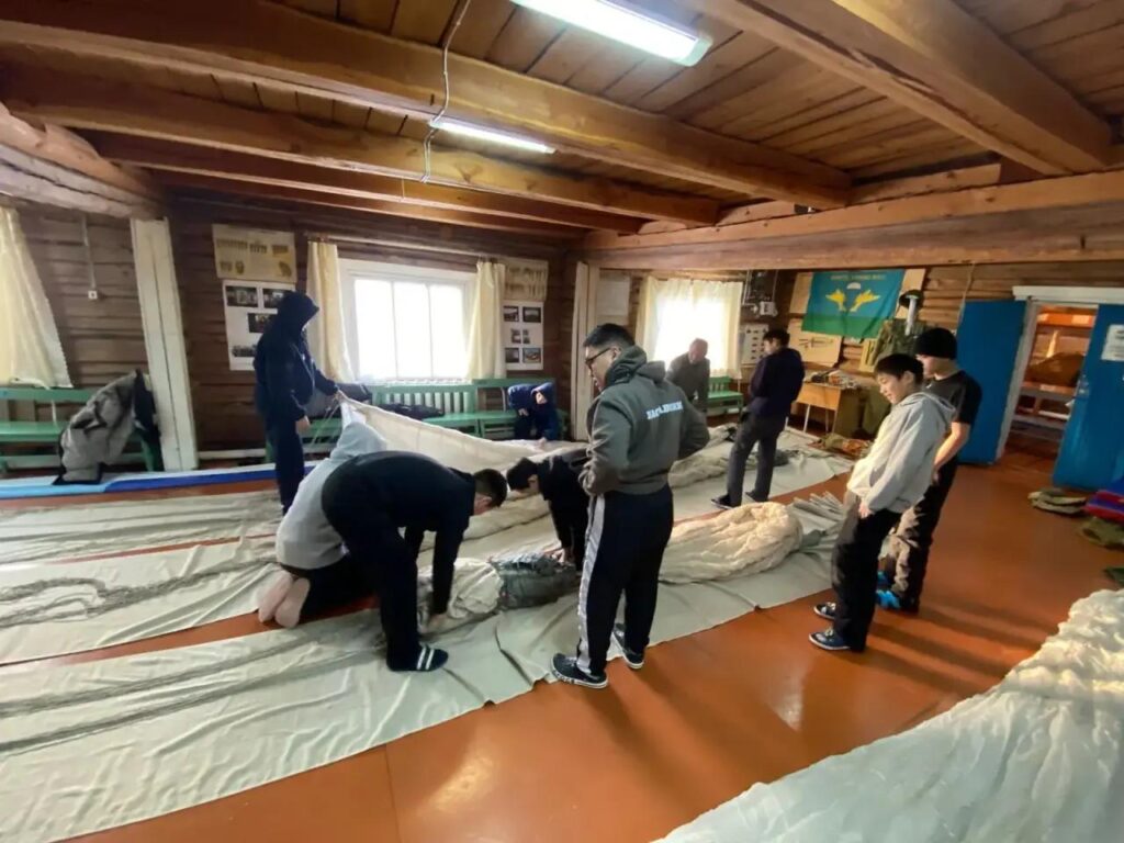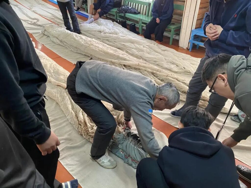 Парашютнай кулууп салайааччыта Владимир Николаевич уонна инструктор Иннокентий Вячеславович оҕолору парашютнай спорка, парашют систиэмтин, материальнай чааһын, сааһылыыры үөрэттилэр. Зачет тутан горкаттан ыстаннардылар.