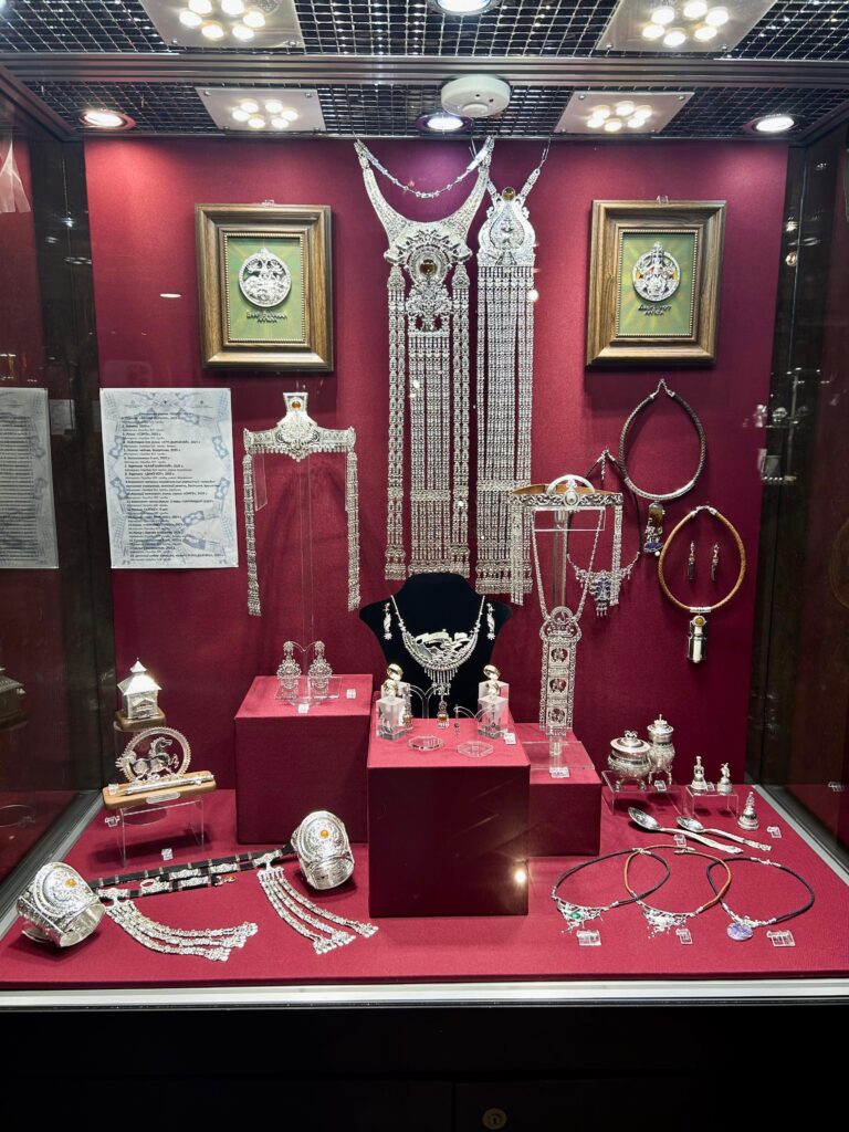 Настоящим украшением вечера стали работы мастера Петра Алексеева — серебряные изделия ручной работы, в которых оживают символы якутской культуры. Его творчество стало олицетворением глубокого уважения к корням и стремления сохранить самобытность национального стиля.