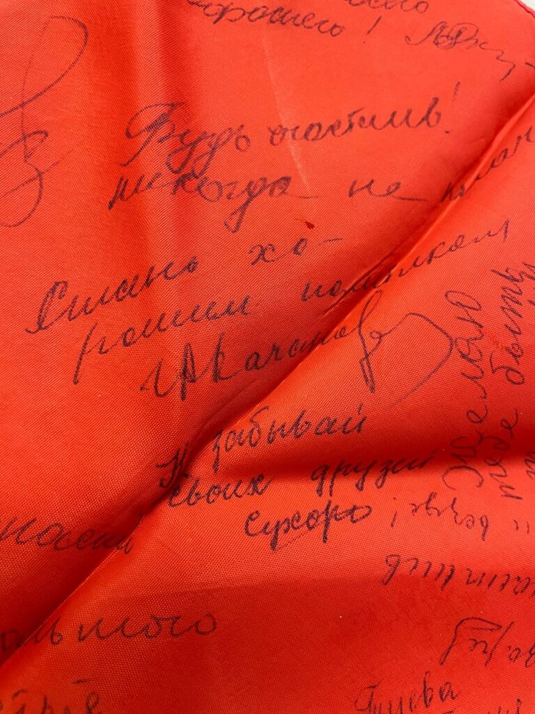 Ол кыһыл хаалтыска маннык элбэх баҕа санаалар суруллубуттар: “Не забывай друзей-артековцев”; “Я Афоне желаю, чтоб он был посол Советского Союза”; “Будь честным всю жизнь. И не осрами звание Артековца”; “Желаю тебе быть отличным президентом, а меня взять в министры. Павлов Сергей”; “Стань хорошим политиком”.
