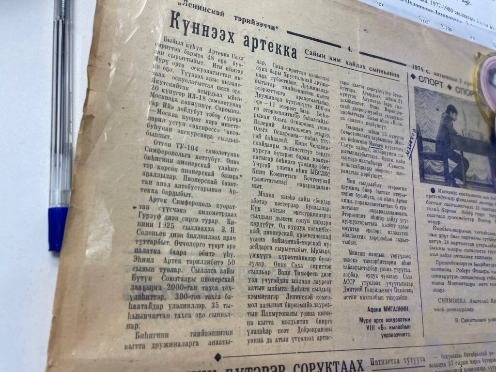 1974 сыллаахха атырдьах ыйын 24 күнүгэр буолбут экскурсия туһунан блокнотугар маннык бэлиэтэммит: “25. Экскурсия буолла. Морской лааҕырга сырыттыбыт. Манна маҥнайгы Артек тэриллибит. Миигинэн тута Дружиннай таблица оҥотторо оҕустулар. Мин билигин үгүстэрин билэбин. Син кэпсэтэбин. Бүгүн киинэ буолла. “Морозко” көрбүт киинэм”.