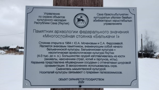 Стоянка Белькачи I — уникальный археологический памятник в долине реки Алдан, открытый в 1964 году Юрием Мочановым и С. А. Федосеевой. Она содержит 23 культурных слоя с материалами раннего железного века, бронзового века, неолита и позднего палеолита. Эти находки помогли систематизировать знания о материальной культуре Северо-Восточной Азии и разработать периодизацию каменного века Якутии. Стоянка дала название белькачинской культуре среднего неолита (4-3 тысячелетия до н.э.), которая могла быть связана с миграцией предков палеэскимосов на Аляску, указывая на связи между жителями Восточной Сибири и ранними эскимосами.