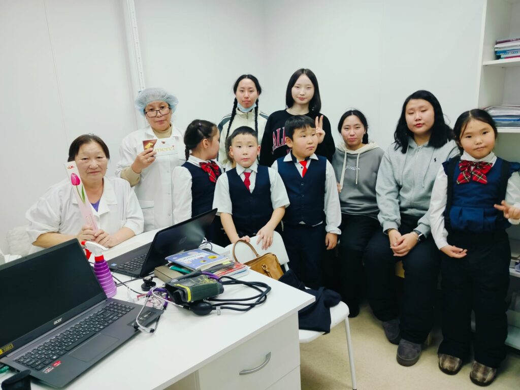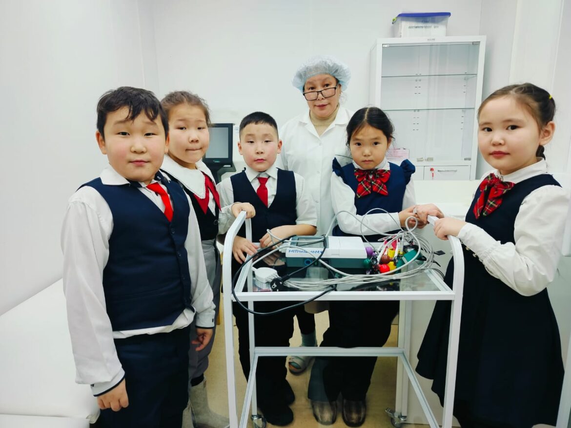2 уонна 10 кылаас үѳрэнээччилэрэ (салайааччылара Жиркова И.Н., Винокурова А.С.) балыыhаҕа экскурсияҕа сырыттылар. Олохтоох фельдшер Тарасова Мотрена Николаевна оҕолору бэрт истиҥник кѳрүстэ. Саҥа сып-сырдык, ып-ыраас балыыһа устун кэритэ сылдьан ханна, хайдах, туох туттуллуохтааҕын, ким тугу гынарын барытын сиhилии кэпсээтэ, кѳрдѳрдѳ. Тонометр, фонендоскоп диэн прибордарынан хайдах туттары практически оҕолорго кѳрдѳрдѳ. Ону олус сэргээн, оҕолор бэйэлэрэ тутан-хабан, иhиллээн, тыынан кѳрдүлэр, кѳрдѳрдүлэр. Икки оҕо медицинскэй үлэhит буолар баҕаларын биллэрдилэр. Түмүккэ олохтоох балыыhа коллективыгар махтал тылларын анаатылар.
