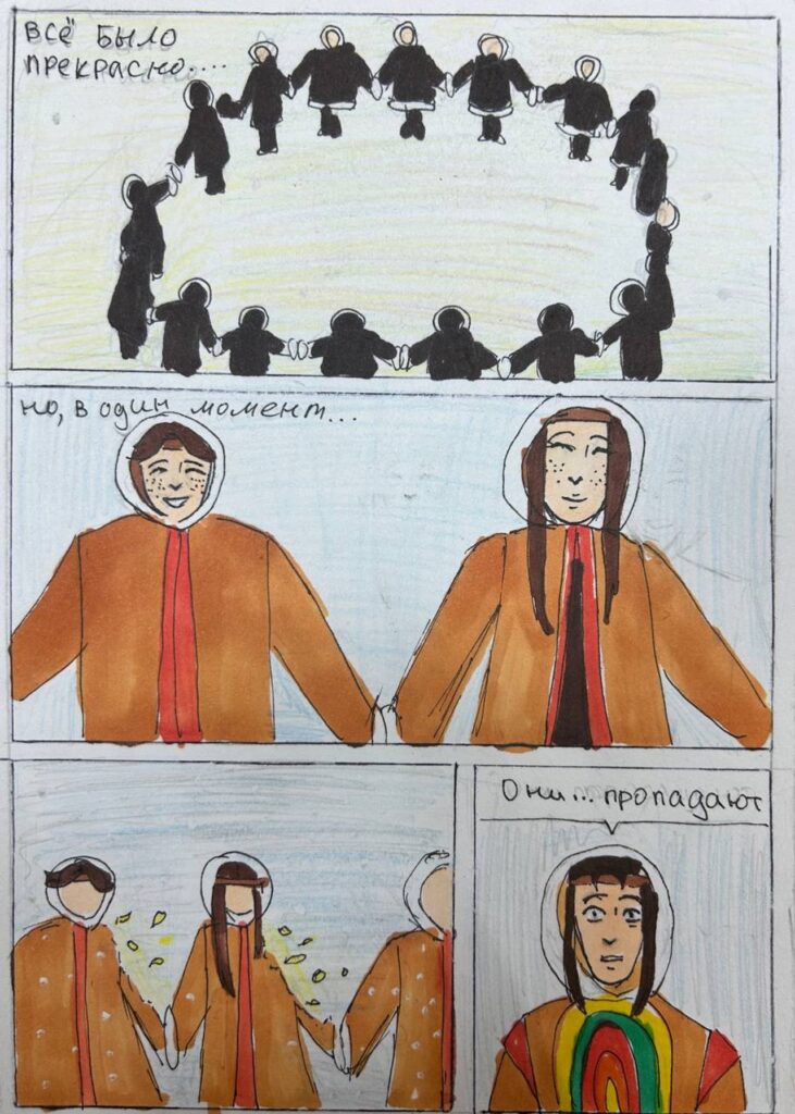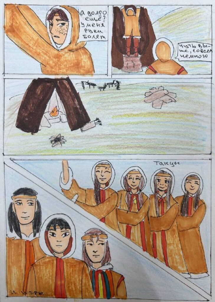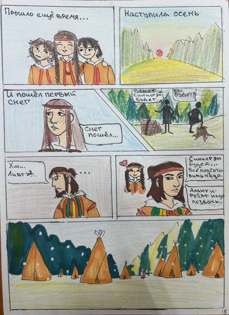 Юная художница Николь Дядькина, ученица 10 класса МБОУ «Петропавловской СОШ», с детства увлечена рисованием и мечтает связать свою жизнь с искусством. Сегодня она создаёт собственные комиксы, в которых оживают традиции и праздники эвенкийского народа. В беседе Николь рассказала о своём творческом пути и вдохновении.