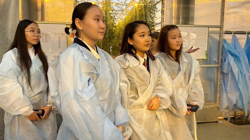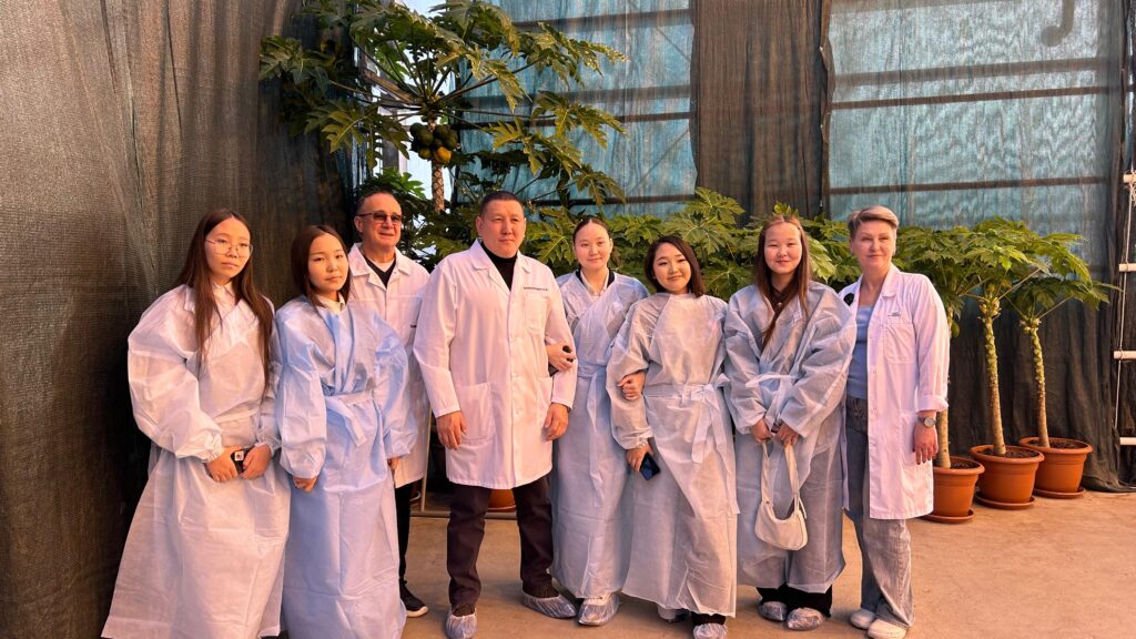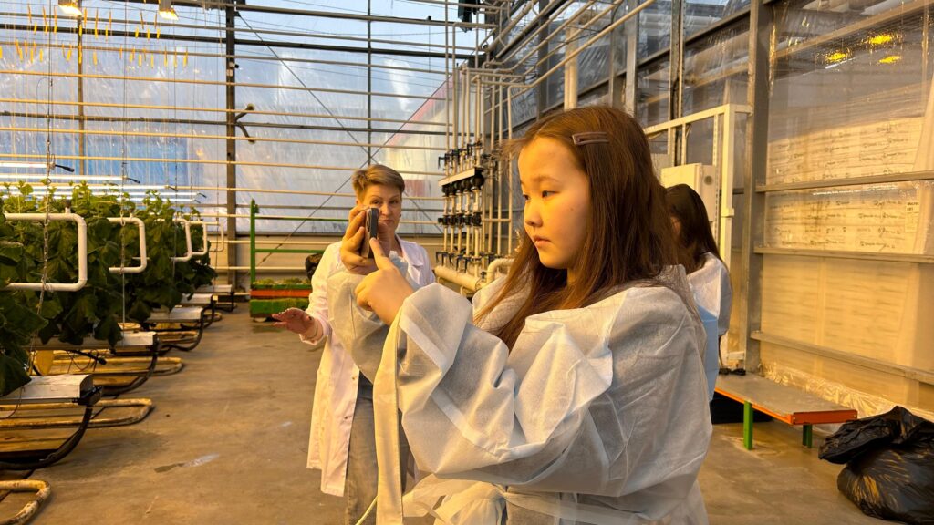 Бу 3,36 га иэннээх сиргэ сылын аайы 2 т тахса оҕуруот аһа үүнэр. Өлгөм үүнүүлээх оҕуруот аһа өрөспүүбүлүкэҕэ оскуолалары, уһуйааннары, атын да социальнай тэрилтэлэри хааччыйар. Аҥардас оҕурсуу 7750 устуука рассаадатын оҕолор сөҕө-махтайа көрдүлэр. Сонун экзотическай астартан — папайя үүнэ турарын илэ харахтарынан көрдүлэр. Эдкордарга «Саюри» хаһаайыстыбатын үлэтин сүрүн агроном Алена Савицкая билиһиннэрдэ.