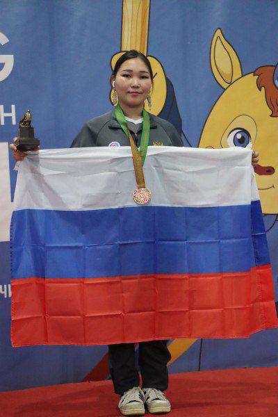 — Миэхэ хотойдоох статуэтка бэлэхтээбиттэрэ, аннытыгар мин аатым суруллубут уонна двухкратная чемпионка России диэн суруктаах этэ уонна Улахан Аан статуэткатын бэлэхтээбиттэригэр үөрбүтүм. Мэтээллэрбин ыйыыр анал сирдээхпин, онно илдьэн уурбутум.