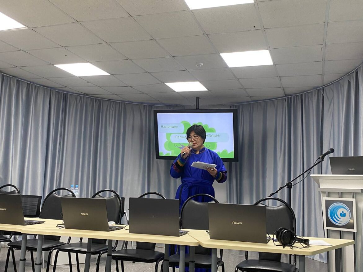 — Сложность, наверное, в том, что чем дальше, тем меньше детей знают свой родной язык. Мы, когда принимаем детей в первый класс, после диагностики выявляем что у нас есть очень много детей которые не знают свой родной язык. И для этого, мы, учителя разработали курс по внеурочной деятельности. Он называется «Туяка», что значит «лучики». Этот курс мы реализовываем уже 14 лет через модуль внеурочной деятельности. Два раза в неделю проводим. Проводя этот курс, мы увидели, что все-таки есть развитие, есть положительная динамика. Чтобы оптимизировать этот процесс, я сама стала думать, какую бы мне технологию еще применить в своей работе. Есть 4 вида речевой деятельности – чтение, письмо, говорение и аудирование. К сожалению, на аудирование мы, учителя родных языков, очень мало уделяем внимания. 65-70% человек на уроке слушает. Аудировнаие — это не просто слушать, это нужно учить детей осмысленно слушать. Должна быть ответная и коммуникативная какая-то реакция. И поэтому я стала работать над аудированием как одним из видов речевой деятельности. Создала свой курс «Поговорим на бурятском». Этот курс у меня разработан на сайте Stepik. В содержании дается очень много тем. По аудированию, у нас там идет этапирование. То есть, задания до слушания, во время слушания, после слушания. Это моя технология.
