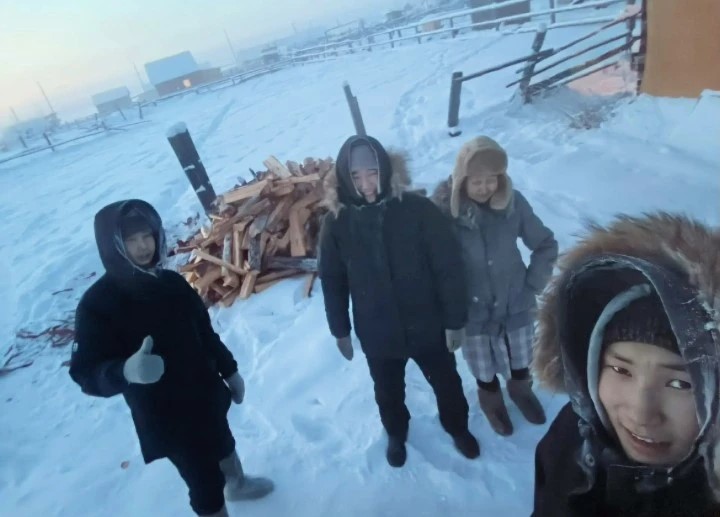 Үөрэхтэрин кэнниттэн 50 кыраадыс тымныыга түмсэ түһэннэр, Акулина Егоровнаҕа сылаас сыһыаннарын анаатылар, үөрэ-көтө көмөлөстүлэр.