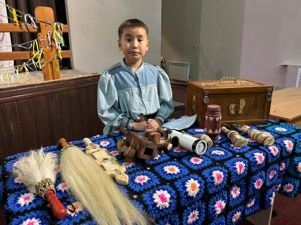 Герман Ионов, 3 «Г» кылаас эбэтин музыкальнай инструменнарын көрдөрөр: