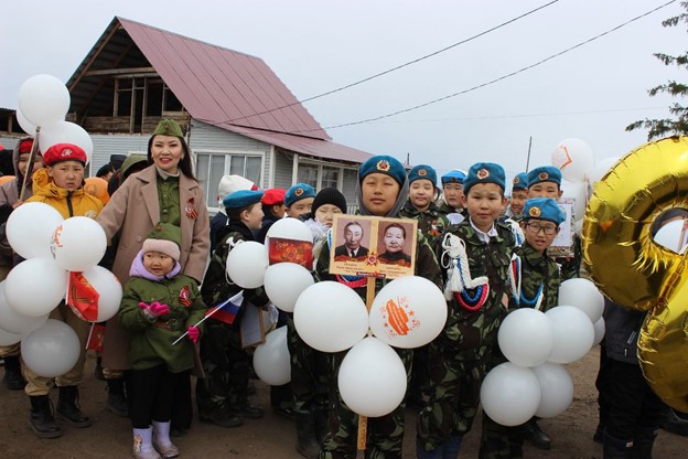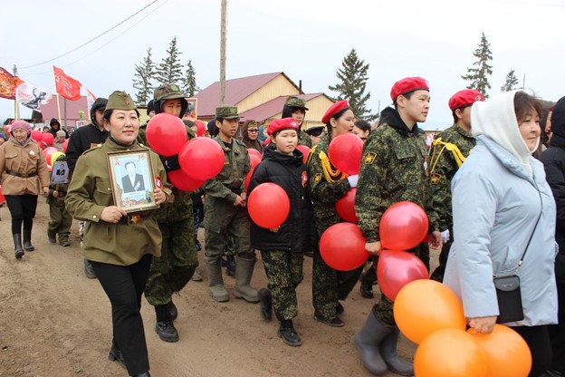 Кыайыы күнүгэр биһиги сэрии кыттыылаахтарын, бэтэрээннэрин, сэрии кэмин оҕолорун саныыбыт уонна чиэстиибит. Параады иилээн-саҕалаан ыытта А.А. Моргусов аатынан «Талба» култууратын дьиэтэ, параадка хаамтылар нэһилиэк дьаһалтата, оскуола делегацията, МЧС, амбулатория үлэһиттэрэ. Параады үс араас дьүһүннээх шаардар киэргэттилэр, бу үбүлүөйдээх Кыайыы гербэтин өҥнөрө. Нэһилиэк аҕам саастаах олохтоохторо, үөрэнээччилэр, төрөппүттэр эһээлэрин, эбээлэрин мэтириэттэрин тутан «Бессмертный полк» акцияҕа кытыннылар.