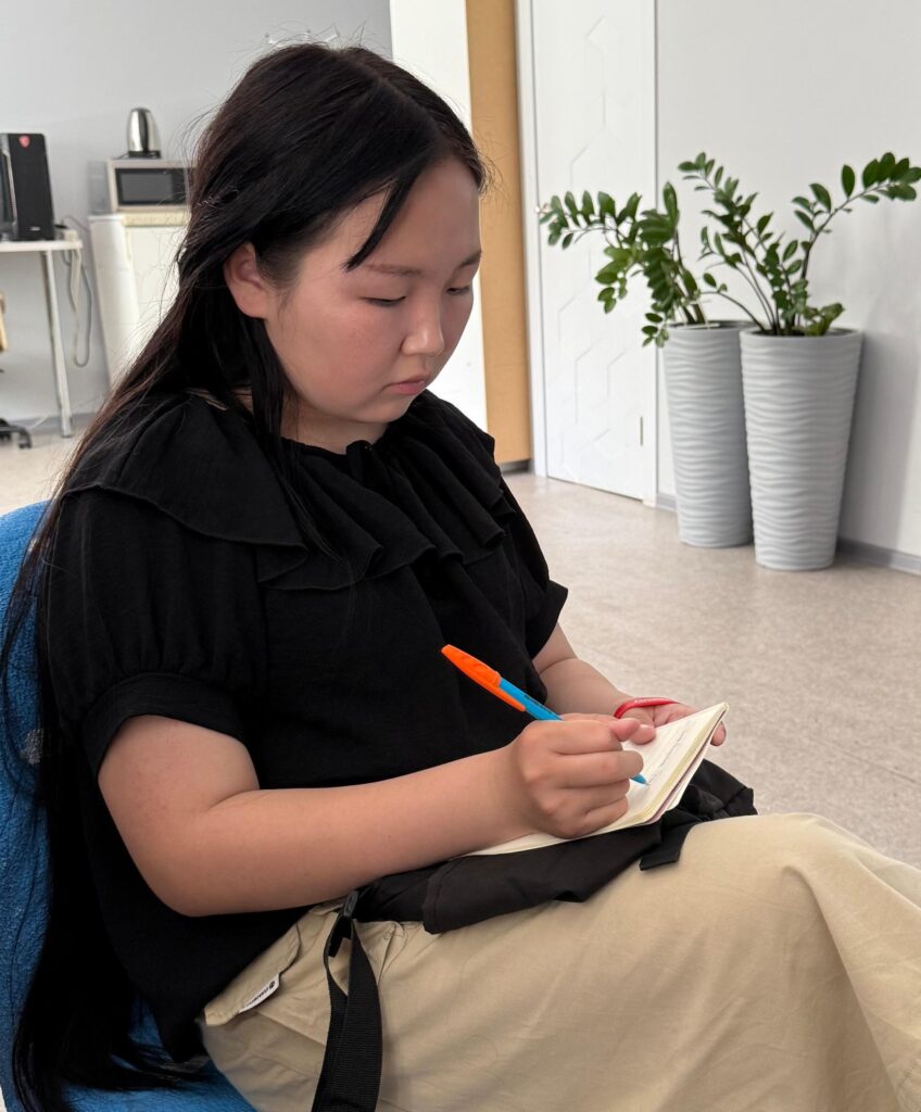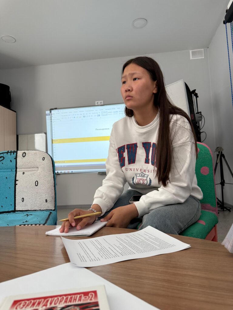 Бэс ыйын 30 күнүттэн от ыйын 4 күнүгэр диэри Дьокуускай куоракка салайааччыбытын В.С. Яковлеваны кытта «Кэскил» оҕо бэчээтин кыһатыгар кэлэн үөрэннибит. Бастакы күн киинэбит сценарийын уопсай тутулун бары көмөлөөн суруйдубут. Салгыы бу сценарий тула «Кэскил» куратордара, видеографтара үөрэттилэр. Бу сценарийга олоҕуран, ханнык кэрчиккэ тугу киллэриэхпитин, ханнык технологиялары, ньымалары туһунарбытын, монтаж үлэтин, камераҕа сөпкө уһулар, искусственнай интеллегы хайдах туһанарбыт туһунан – барытын көрдөрөн, кэпсээн биэрдилэр.