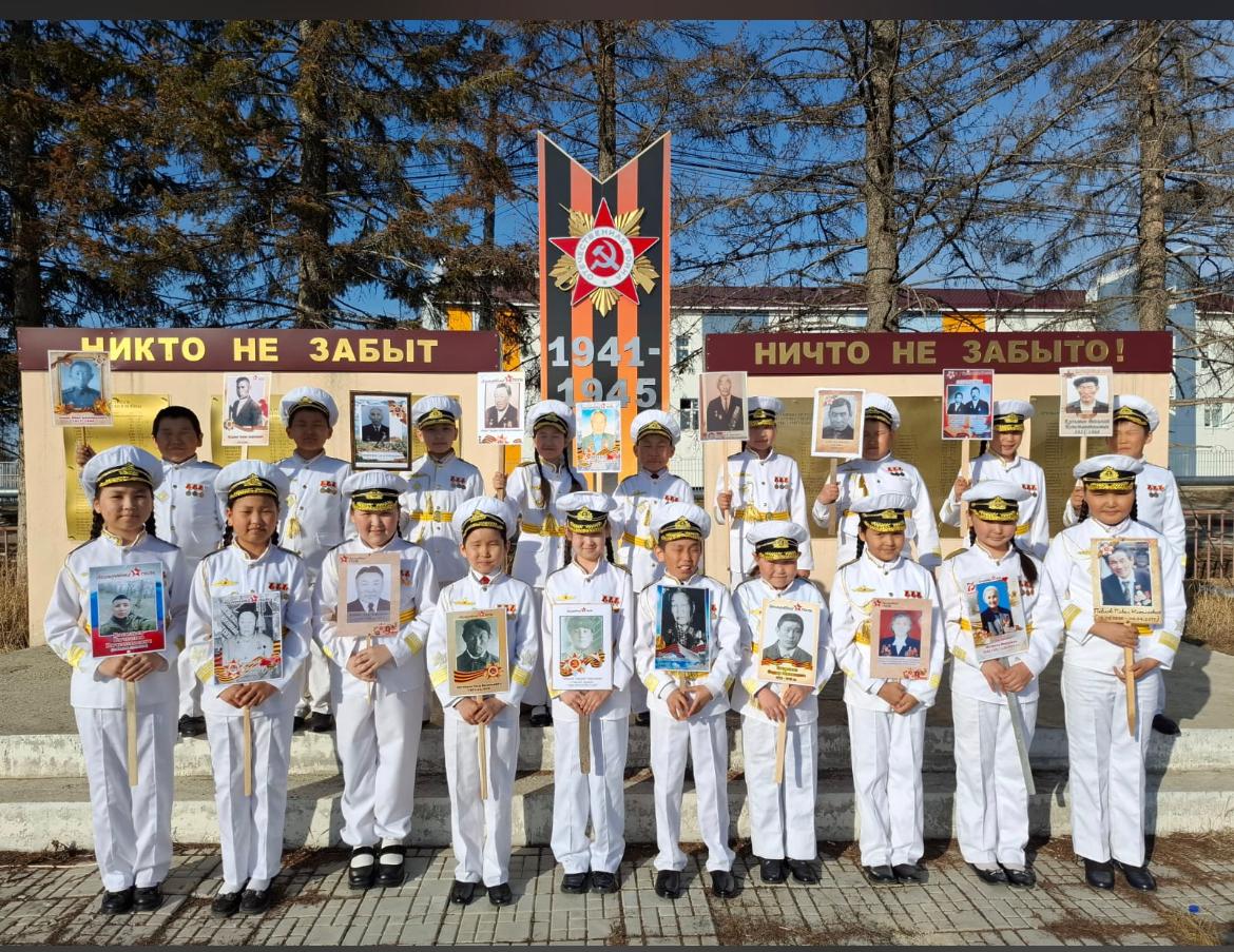 Ол курдук, биһиги оскуолабытыгар үөрэнээччилэр сэриигэ сылдьыбыт эһэлэрин, эбэлэрин, тыыл уонна үлэ бэтэрээннэрин туһунан презентация оҥорон, уруһуй уруогар уруһуйдаан көрдөрдүлэр, кэпсээтилэр. «Герои нашей Победы» диэн ааттаан мэтириэттэри тутан, хаартыскаҕа түһэн, кылаас ааннарыгар иилэн киэргэттилэр. Оҕолор бары кэриэтэ эһэлэрин, эбэлэрин, аймахтарын «Бессмертный полк» кэккэтигэр киллэрэн ааттарын үйэтиттилэр.