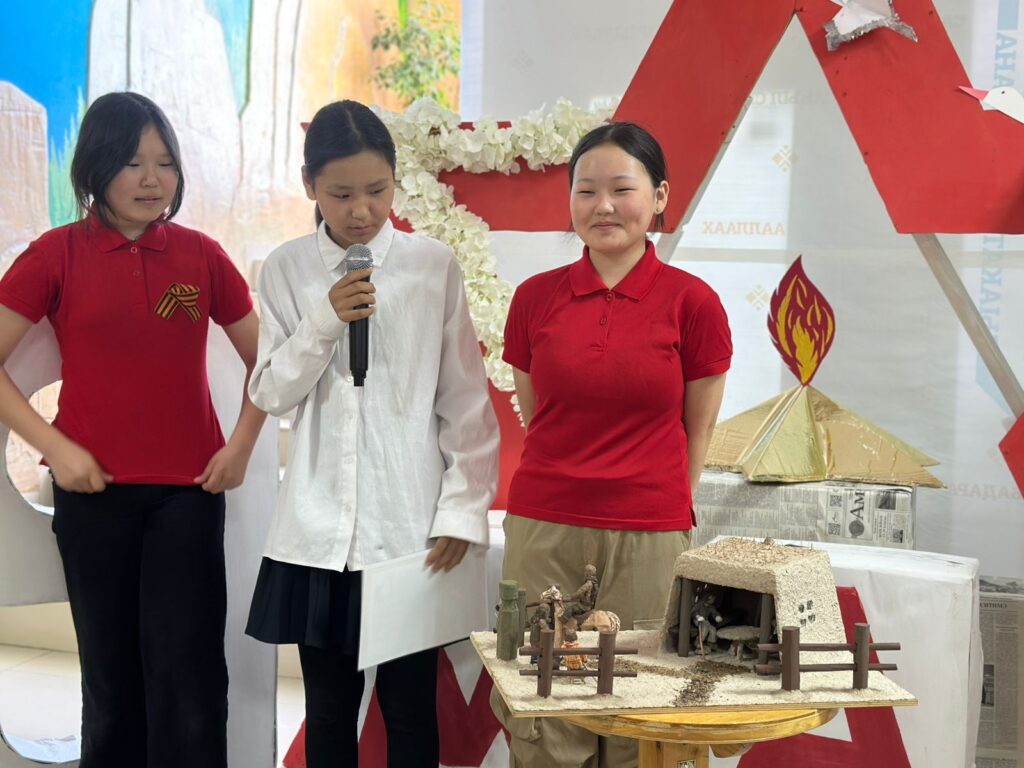 Ону тэҥэ, VI кылаас кыргыттара «Мин мантан сэриигэ барбытым кыракый балаҕан дьиэбиттэн» диэн Иван Артамонов хоһоонугар олоҕуран композиция оҥорбуттарын кэпсээтилэр. Салайааччылара үлэ уруогун учуутала Туяра Самсонова. Туттуллубут техникалара сымыыт угуллар хордуона, ПВА клей, медицинскэй баата, борубулуоха,аска аналлаах фольга, акриловай кырааска.