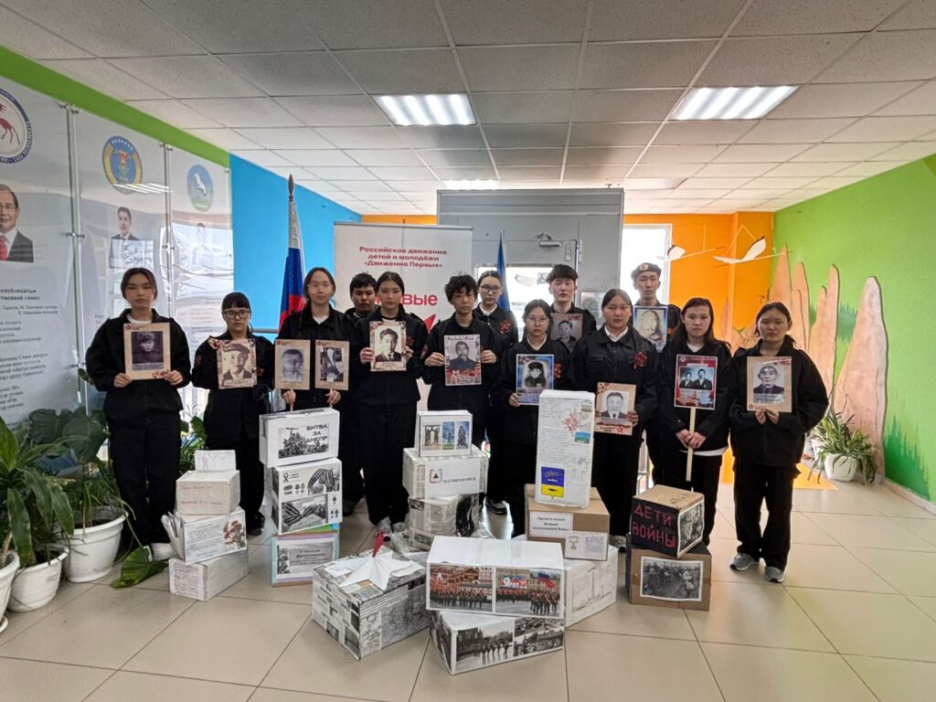 Улуу Кыайыыга анаммыт «Окно Победы» акцияҕа оҕолор бары түннүк киэргэттилэр. «Движение первых» бэйэни салайыныы оҕолоро фотозона оҥордулар (салайааччы В.Д. Мартынова).