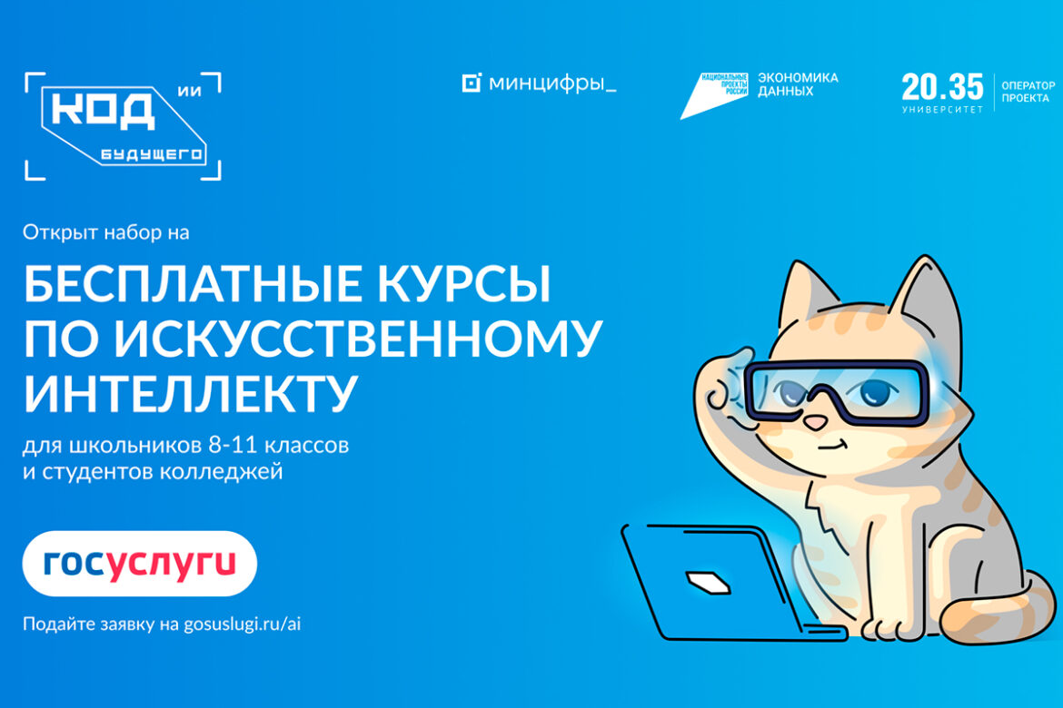 Минцифры России в рамках федерального проекта «Кадры для цифровой трансформации» национального проекта «Экономика данных и цифровая трансформация государства» реализует проект «Код будущего. Искусственный интеллект», направленный на обучение школьников 8-11 классов и обучающихся по программам среднего профессионального образования базовым навыкам искусственного интеллекта.