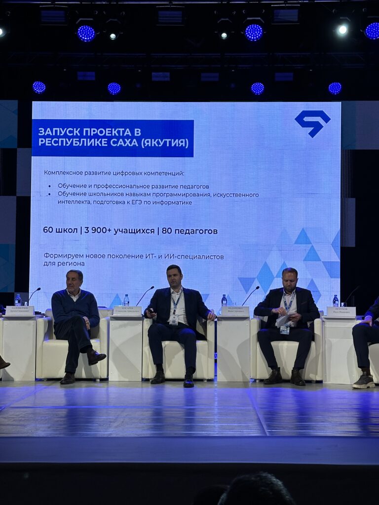 Директор по работе с государственным сектором Международной школы программирования и математики «Алгоритмика» Станислав Косарев рассказал о непрерывной цифровой образовательной траектории от детского сада до вуза и «Школы 21». «В мире технологий образование становится более человеческим — искусственный интеллект лишь инструмент для раскрытия потенциала ребёнка», — подчеркнул он. Платформа проекта помогает детям и педагогам, формируя мотивированных учащихся; в Якутии программу внедряют в 60 школах при поддержке Сбера.