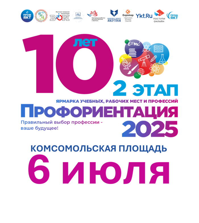 6 июля в г. Якутске на Комсомольской площади состоится ежегодная X межрегиональная ярмарка-выставка учебных мест и профессий «Профориентация-2025».